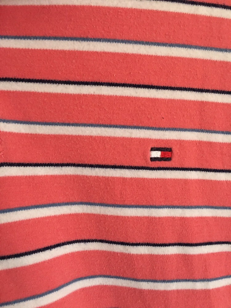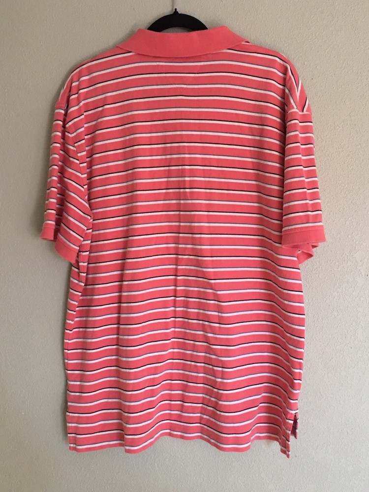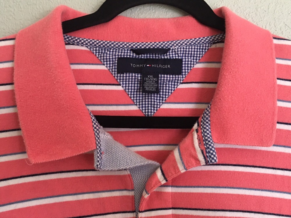 Brand: Tommy Hilfiger Product Line: Tommy Hilfiger Closure: Button UPC: Does not apply Neckline: Collared Occasion: Casual Handmade: No Department: Men Personalize: No Performance/Activity: Golf gtin13: Does not apply Garment Care: Machine Washable Fabric Wash: Medium Type: Polo Size: 2XL Character: N/A Sleeve Length: Short Sleeve Material: 100% Cotton Size Type: Regular Vintage: No Pattern: Striped Color: Pink Theme: Classic, Preppy Season: Spring, Summer Accents: Logo, Button Fit: Regular
