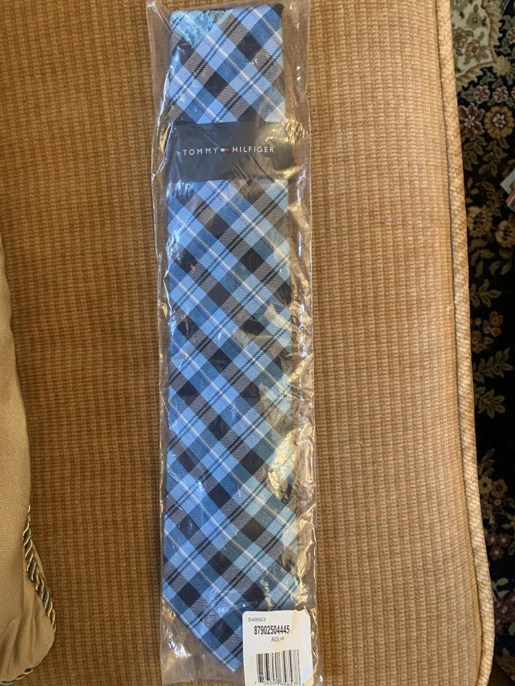 Tommy Hilfiger Aqua Plaid Necktie for men is a stylish accessory featuring a plaid pattern in shades of aqua. Perfect for adding a pop of color and pattern to any formal or casual outfit.