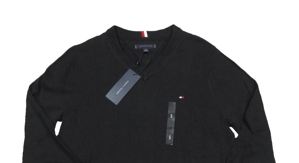 Size Type: Regular Vintage: Yes Material: Cotton Country/Region of Manufacture: Cambodia MPN: 78JB660 Sleeve Length: Long Sleeve Type: Sweater Fit: Regular Fabric Type: Knit Garment Care: Machine Washable Department: Men Style: Pullover Neckline: V-Neck Brand: Tommy Hilfiger Pattern: Solid Color: Black