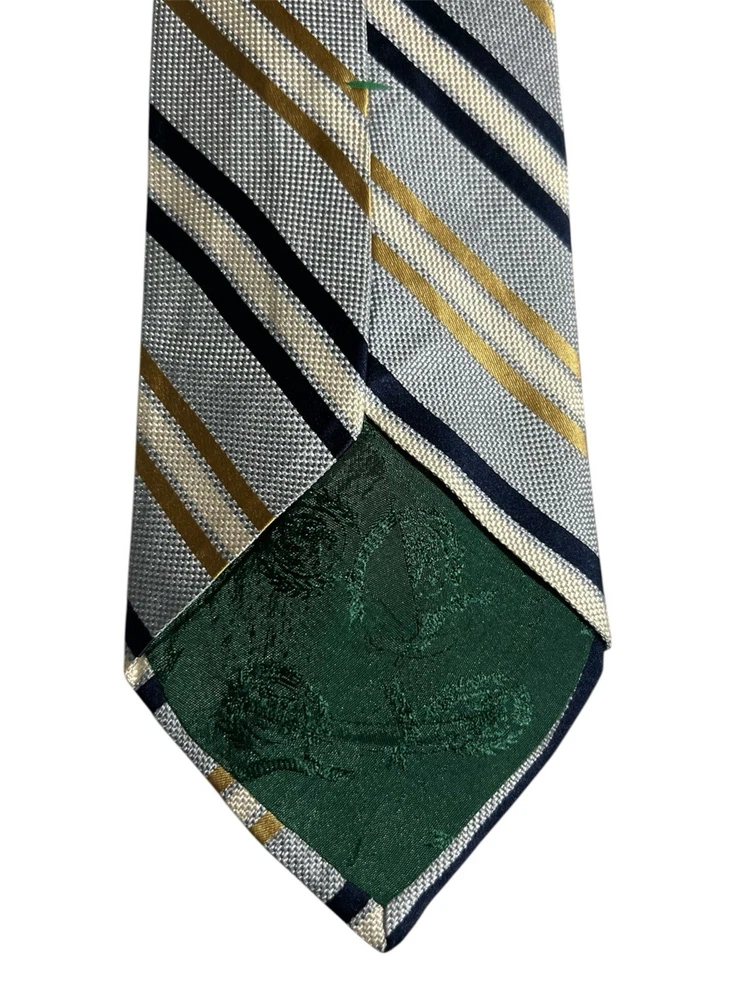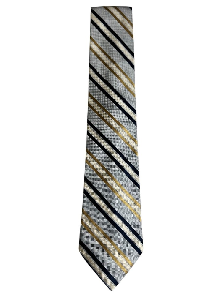 The Tommy Hilfiger Necktie is a luxurious men's accessory designed for business, in the office weddings, or formal events. Made of high-quality silk with a classic striped pattern in blue and gold, this designer tie features the iconic Tommy Hilfiger logo accent. The tie is adjustable in length, perfect for a preppy and stylish look. Made in the United States, this classic one-size tie exudes sophistication and confidence, making it a versatile and fashionable addition to any man's wardrobe.
