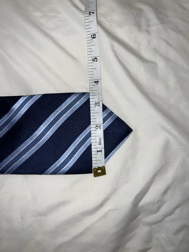 Crafted with the discerning gentleman in mind, this Tommy Hilfiger neck tie marries classic style with contemporary design. The blue and white striped pattern offers a versatile look that's at home in both business and social settings. Made from premium 100% silk, the tie delivers a smooth, luxurious feel that's synonymous with quality. Designed to hit the sweet spot of sophistication, the tie measures a classic 57 to 60 inches, making it a perfect fit for most. Proudly made in the USA, it's a staple accessory that adds a touch of elegance to any outfit, embodying the timeless appeal that Tommy Hilfiger is renowned for. Length: 59.5 in Width: 3.38 in
