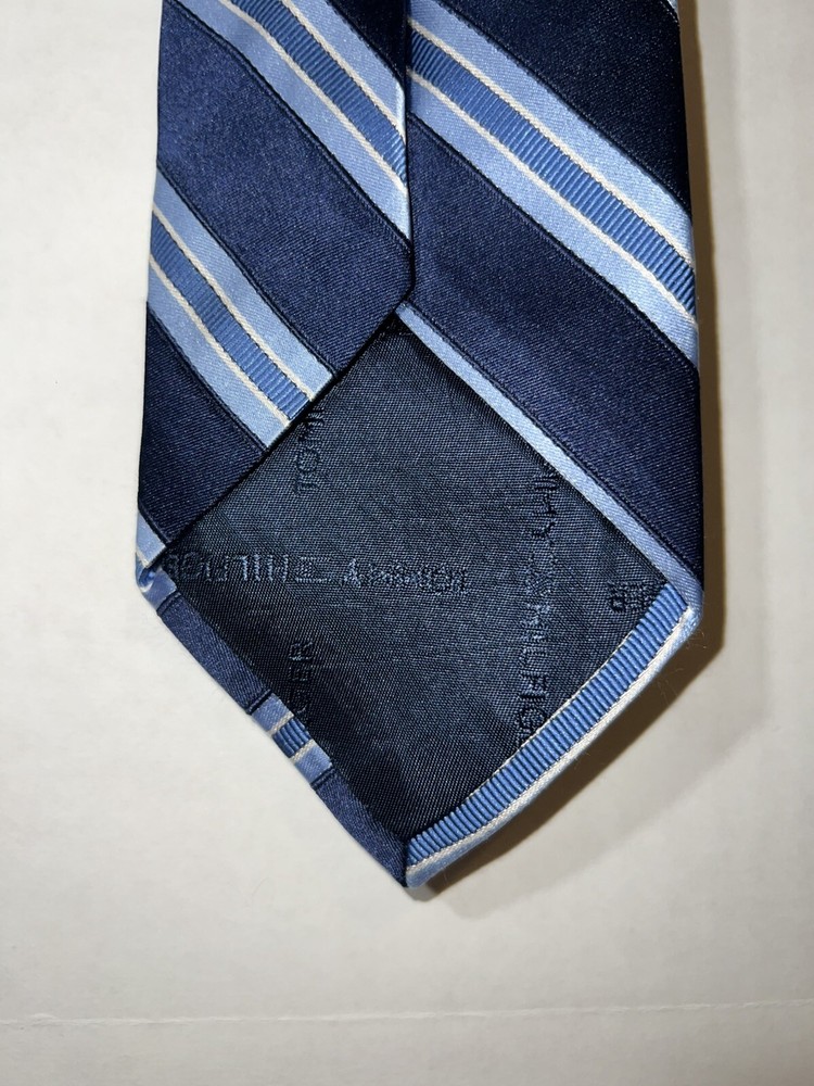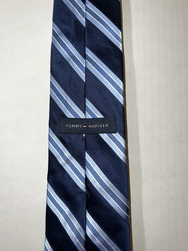 Character: Blue Material: 100% Silk, Silk Color: Blue Item Length: Classic (57"-60") Size: One Size Pattern: Striped Fabric Type: Silk Blend Brand: Tommy Hilfiger Country/Region of Manufacture: United States Department: Men Seller Notes: “pre-owned, great condition” Type: Tie