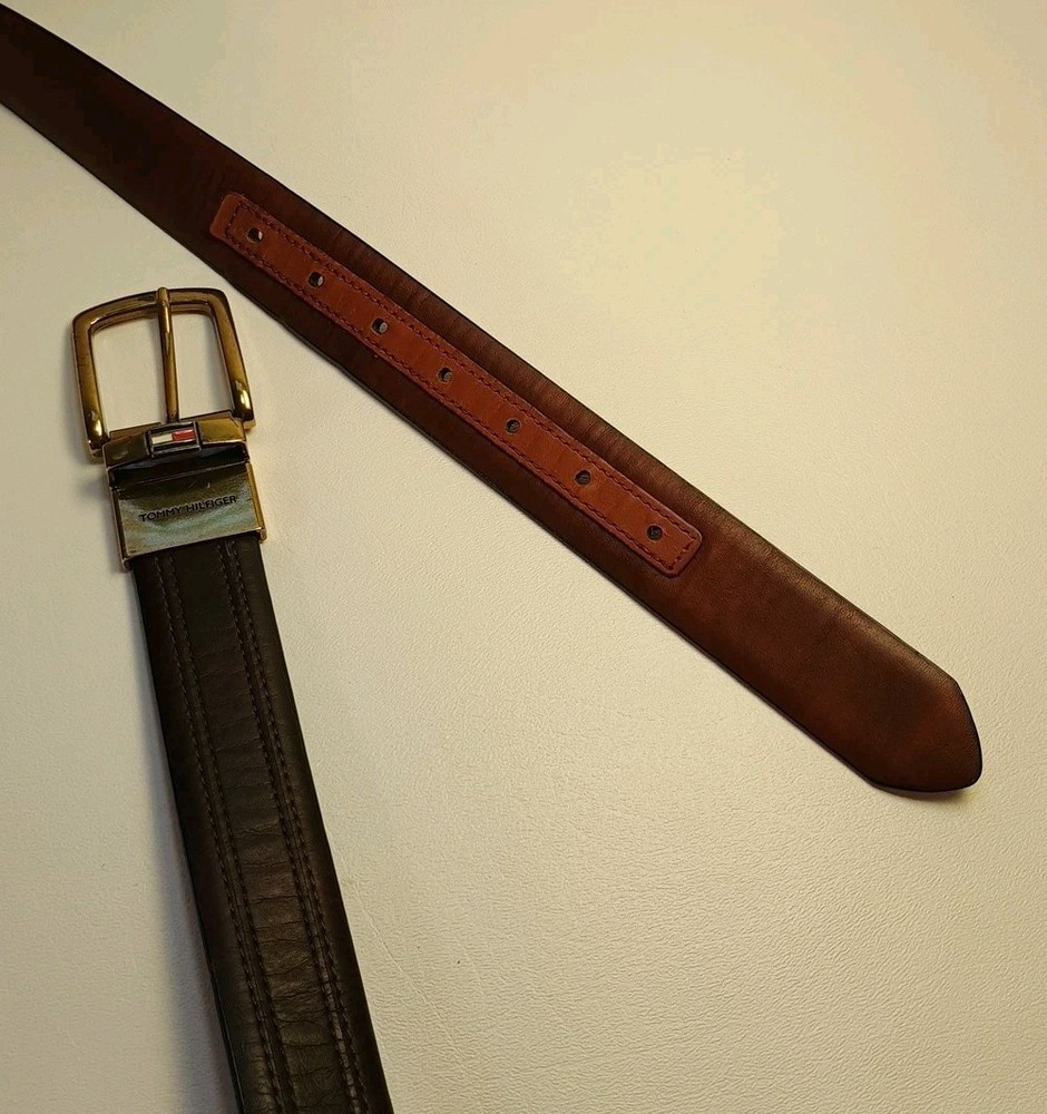 This belt is a fantastic find! The dark brown leather is still in great shape, with a sturdy buckle that holds up well. Perfect fit for size 54/56, and the Tommy Hilfiger quality shines through. Arrived quickly and looks even better in person—definitely worth it for the price!