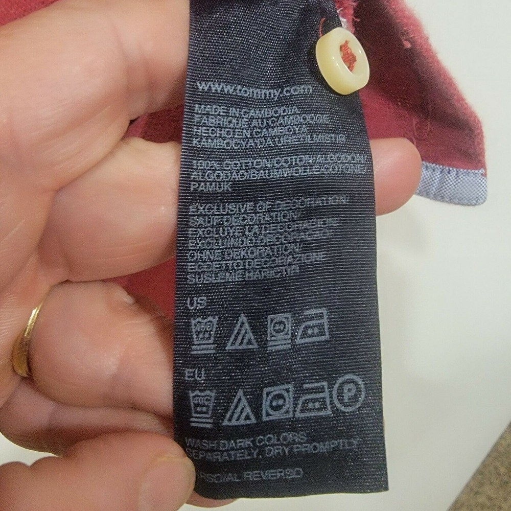 Vintage: No Material: 100% Cotton Size: L Department: Men Features: All Seasons, Easy Care Season: Fall, Spring, Summer, Winter Brand: Tommy Hilfiger Sleeve Length: Short Sleeve Collar Style: Spread Type: Polo Theme: Classic, Designer Handmade: No Garment Care: Machine Washable Closure: Button Fit: Classic Neckline: Collared Size Type: Regular Graphic Print: No Performance/Activity: Beach, Driving, Fishing, Golf, Hiking, Motorcycle, Riding, Rugby, School, Skateboarding, Typing, Walking Pattern: Solid Accents: Button, Logo Occasion: Activewear, Business, Casual, Travel Color: Red Country/Region of Manufacture: Cambodia Fabric Type: Knit Personalize: No