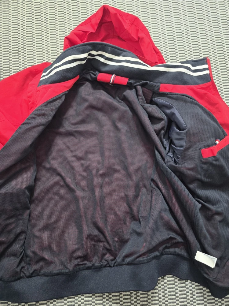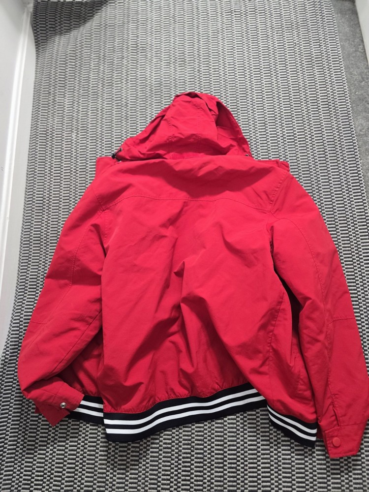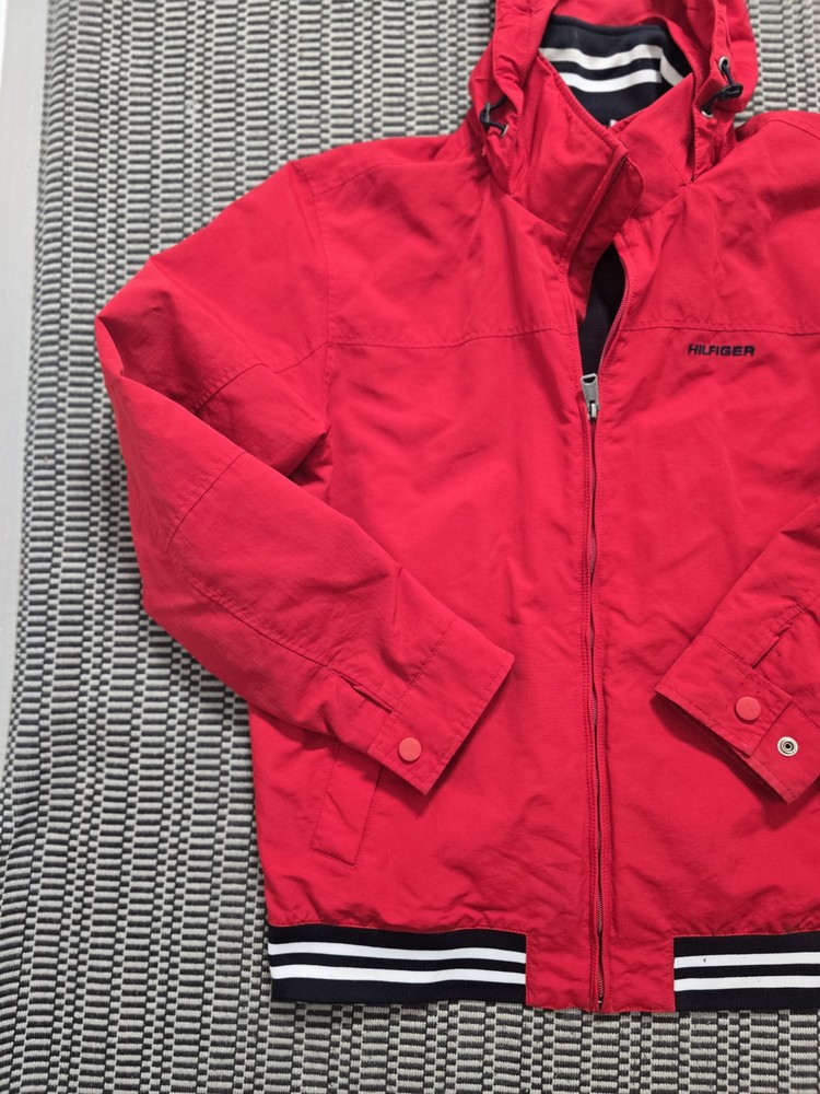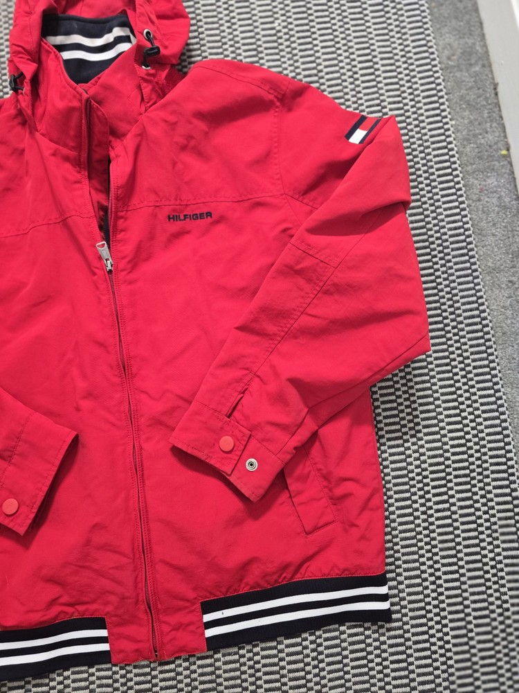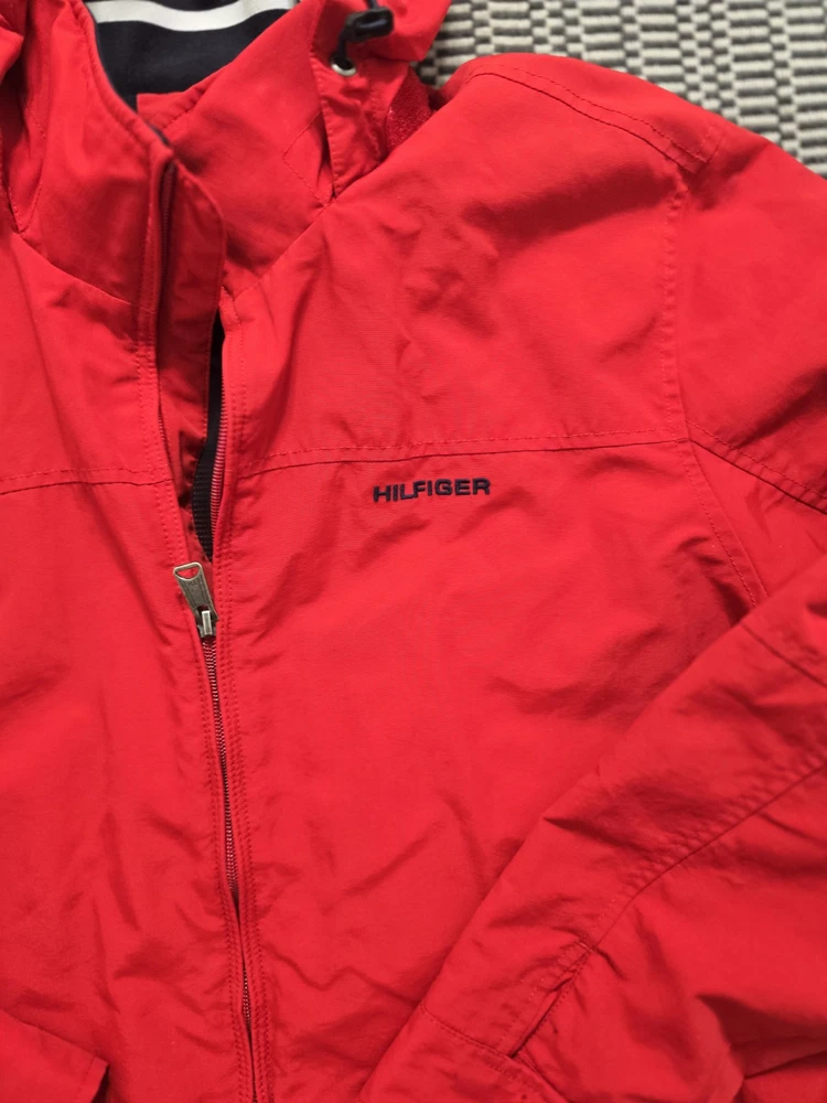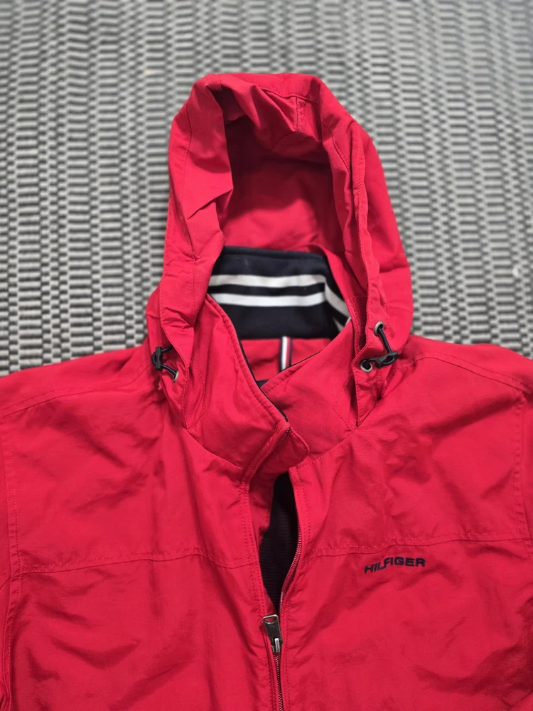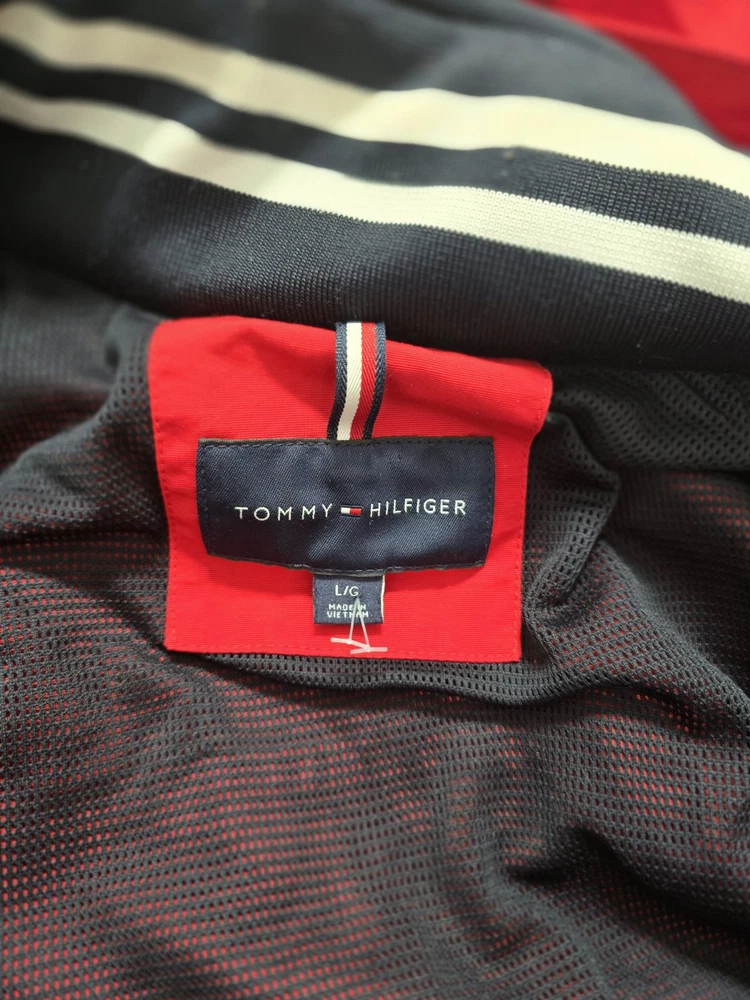 Insulation Material:PolyesterPattern:SolidFit:RegularLining Material:PolyesterDepartment:MenColor:RedCountry/Region of Manufacture:VietnamBrand:Tommy HilfigerOuter Shell Material:NylonProduct Line:Tommy Hilfiger Tommy JeansType:JacketFeatures:Full ZipGarment Care:Machine WashableVintage:NoStyle:jacketSize:LSeller Notes:“Measurements in picture#2, from non smoking environment , in great condition, skuK0598”Size Type:Regular