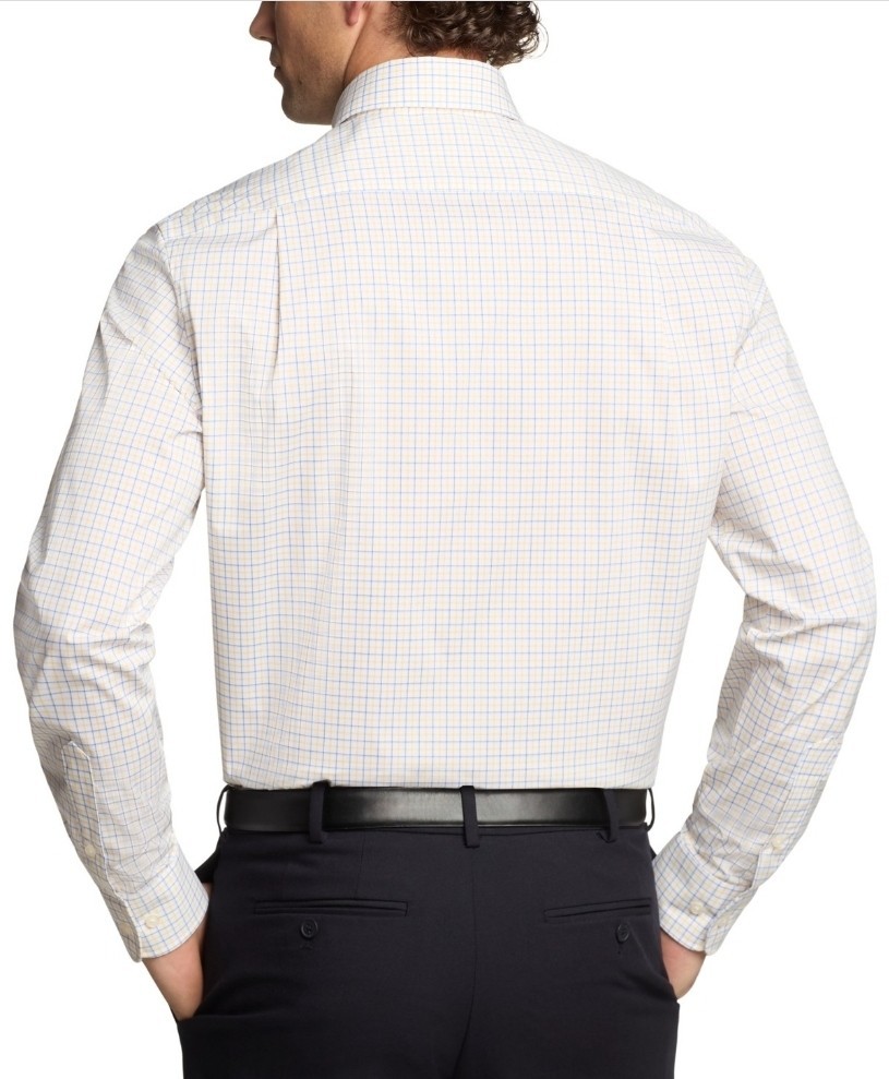 The product is a Tommy Hilfiger Men's Regular fit Dress Shirt in size XL, featuring a yellow plaid pattern. It has a collared neckline, button closure, and is made from a cotton blend fabric wash. The sleeve length is 36-37 inches, and the top cuff style is a barrel cuff. This dress shirt is designed for a regular fit and has a neck size of 17.5 inches. Perfect for men looking for a stylish and comfortable dress shirt for various occasions.