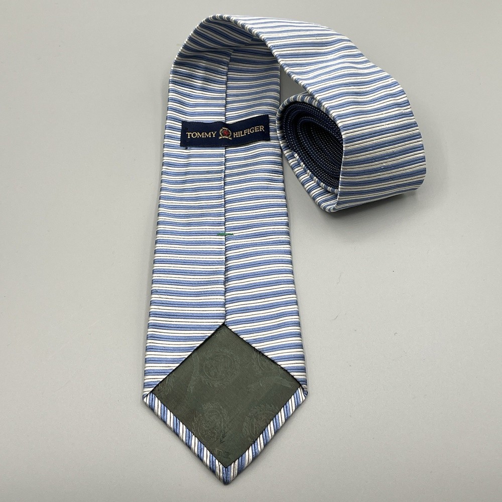 Tommy Hilfiger Tie Mens 100% Silk USA Half Blue Stripe Half Blue Speck 58" Item is in good condition. Free from spots or stains and shows normal wear or better. Shipping and Returns I usually ship within 2 business days so you get your order fast! I accept no hassle returns for items within 30 days, even if you just do not like it. Please feel free to ask any questions you may have. I answer most questions as soon as possible and thanks for looking!