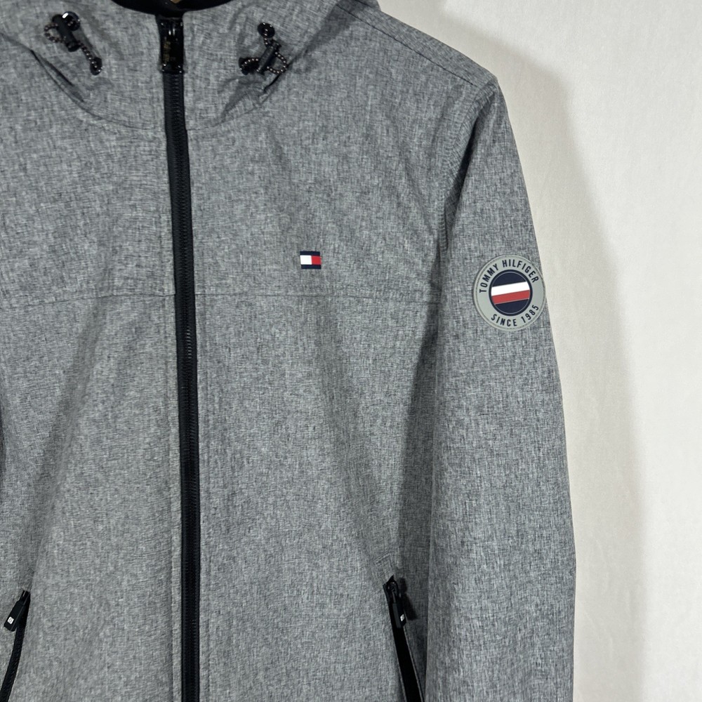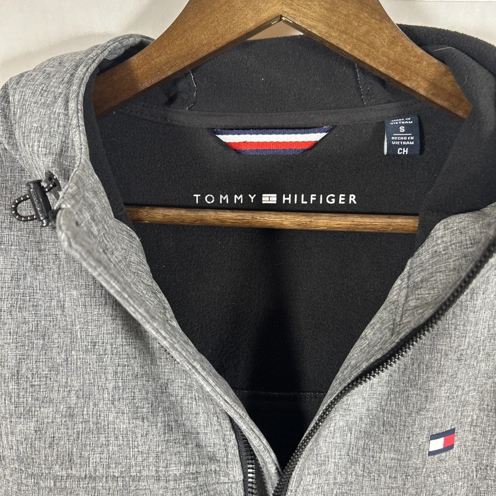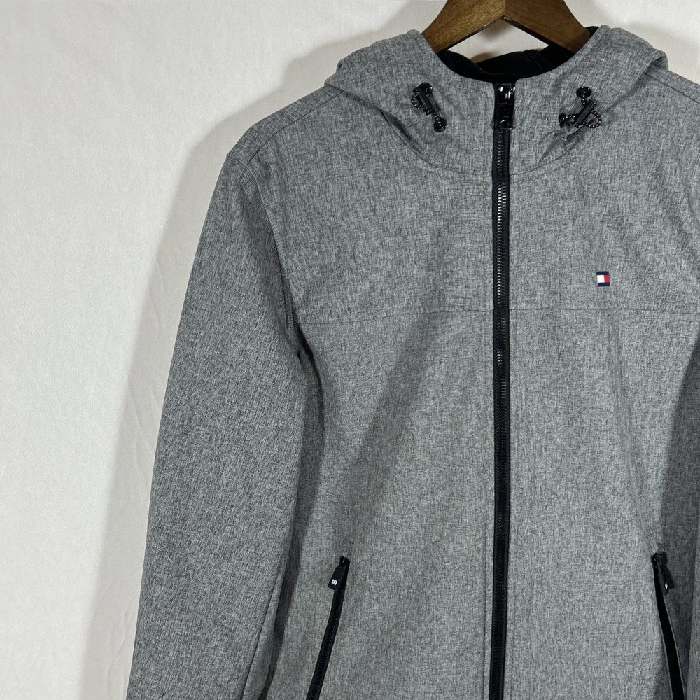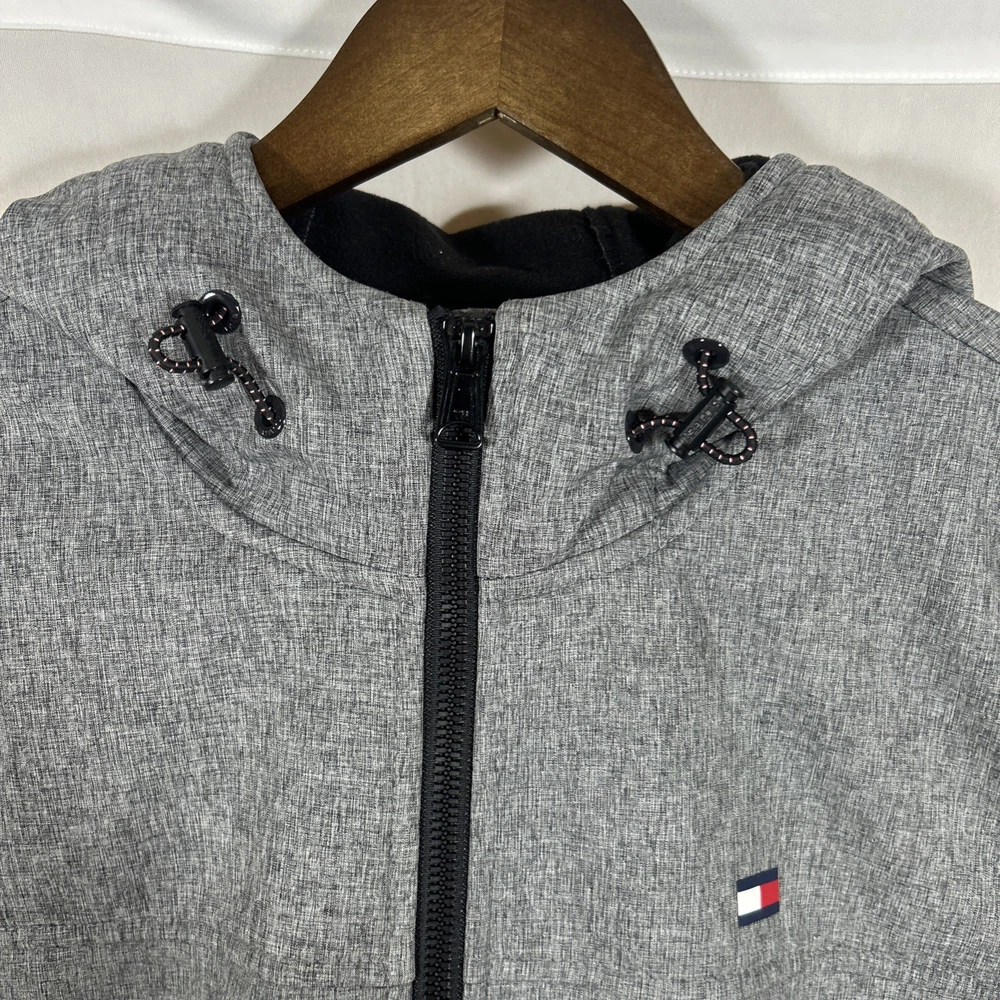 Tommy Hilfiger Men’s Small Gray Hooded Fleece lined Softshell Full Zip Jacket