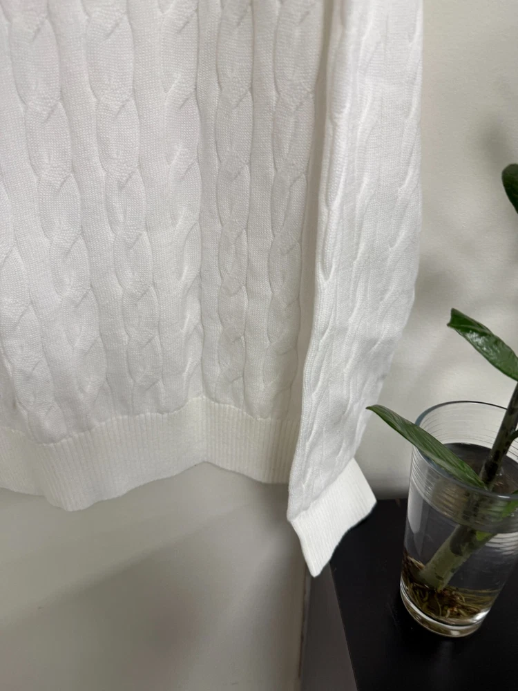 1. This sweater is a fantastic find! The cable knit design gives it a classic, stylish look, and the 100% cotton material makes it super soft and comfortable. It fits true to size (XL) and feels well-made. Shipping was fast, and the tracking number provided made it easy to follow the delivery. Great quality for the price—definitely worth it if you want a cozy, stylish addition to your wardrobe. Highly recommend!