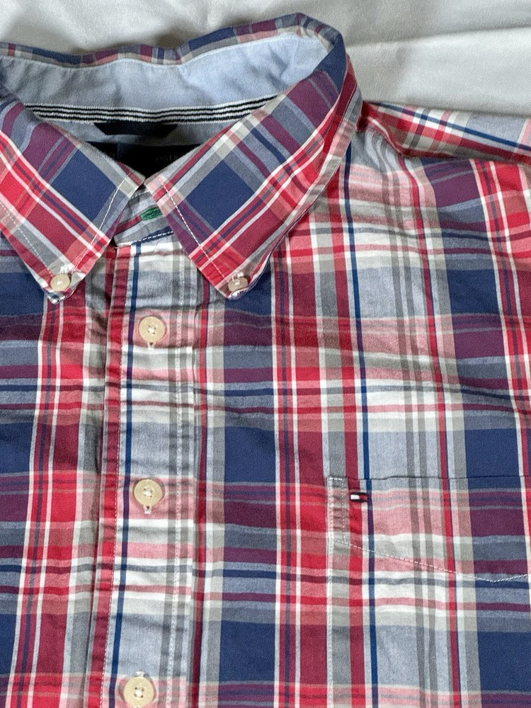 Tommy Hilfiger Mens Shirt XXL Button Down Long Sleeve Multicolor Plaid Vintage USA Patriotic July 4th Independence Day Pre owned in very good condition No rips, stains or tears. Colors may appear different depending on screen or monitor viewed on. See photos for details and measurements.