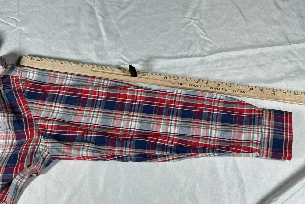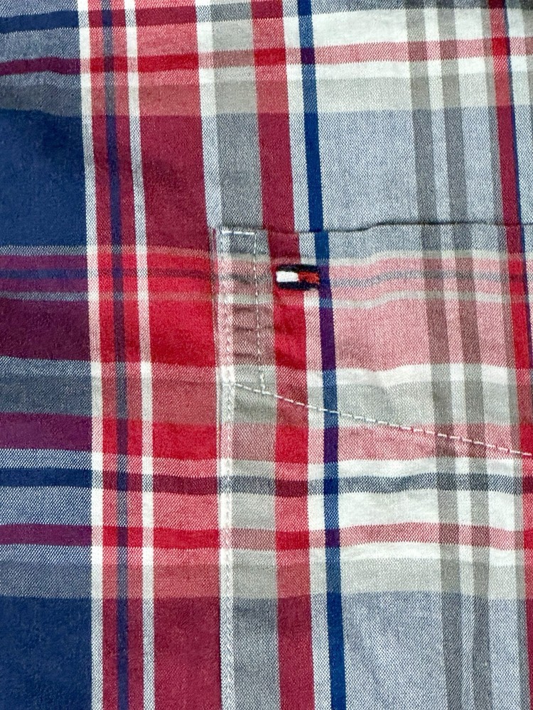 This shirt is a fantastic find! The vintage Tommy Hilfiger plaid design is stylish and eye-catching, perfect for a casual or dressed-up look. The XXL size fits true to size, and the long sleeves add a polished touch. The colors are vibrant, and the condition is excellent—no flaws at all. Great for Independence Day or any occasion. Love the retro patriotic vibe!