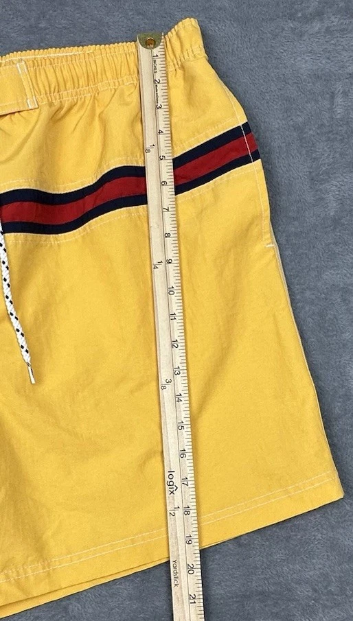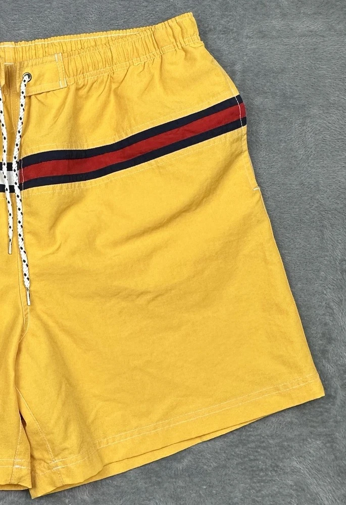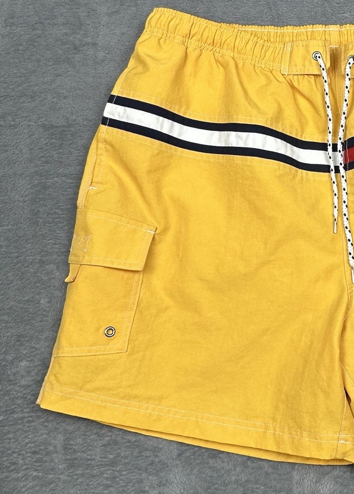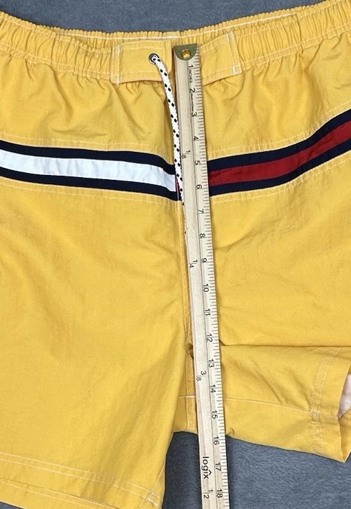Tommy Hilfiger Swim Trunks Mens XXL Yellow Tommy Flag 6" Inseam Pockets NEW Brand new swim trunks/never worn. Waist laying flat is 38" but expands to about 41-42". Please see measurements in photos. I ship next business day, but sometimes same business day and Saturday when possible. Please reach out if you have any questions. I am open to offers! Feel free to check out other items in my store. Thanks!
