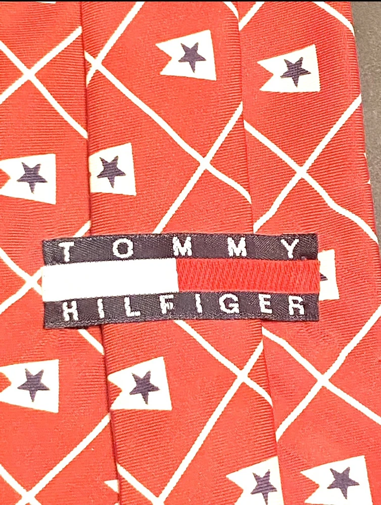 Tommy Hilfiger red, white and blue Diamond star flag vintage style tie. Gently used. Material unknown.