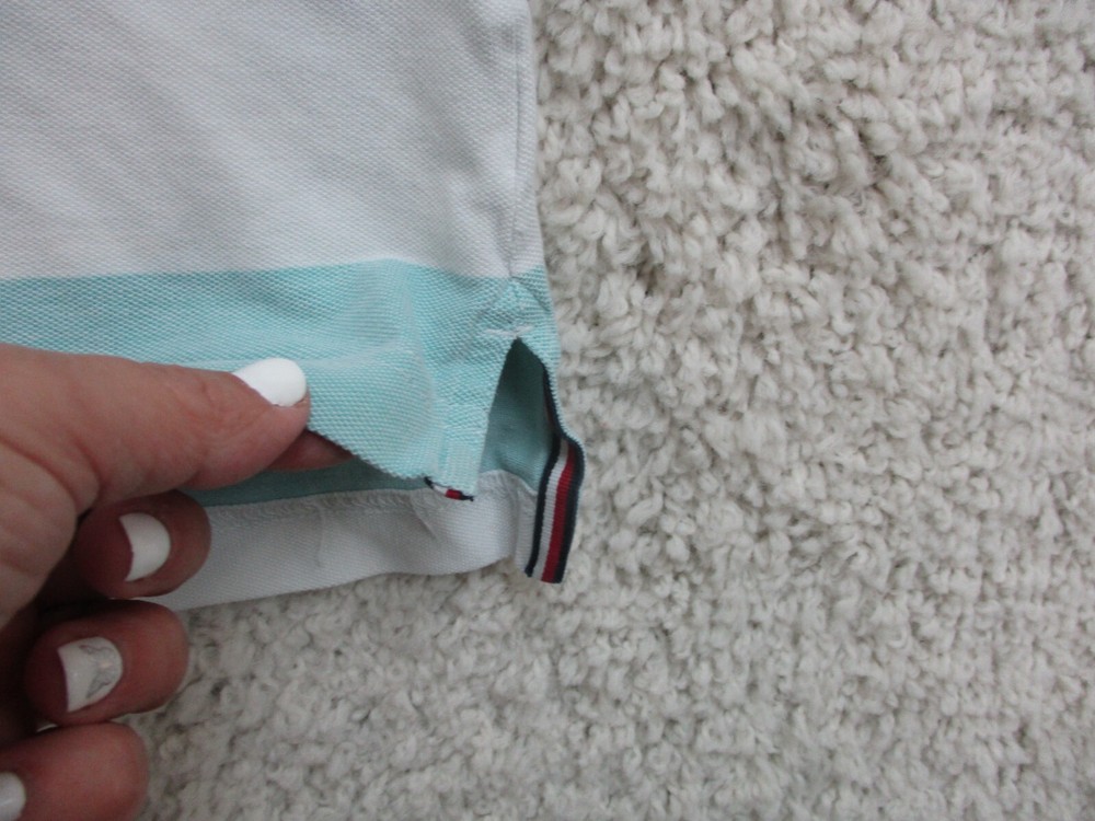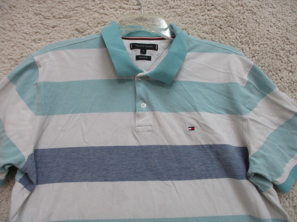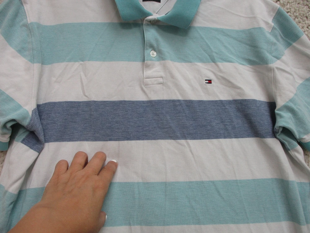 $ 19.01Tommy Hilfiger White Red Blue Stripe Polo T Shirt Mens Size Large