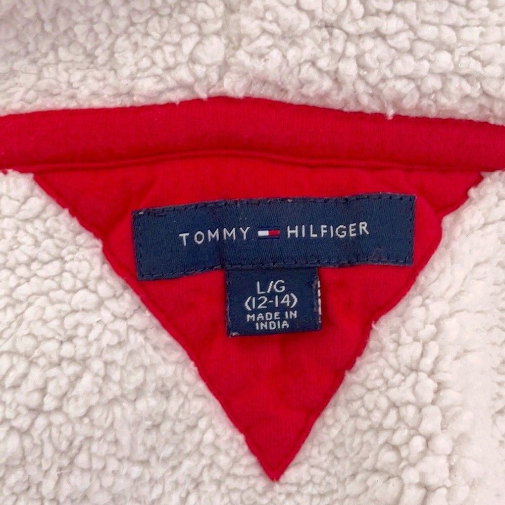 Kids Size Large (12-14) Red TOMMY HILFIGER Fleece Lined Full Zip Hooded Sweatshirt Like new No signs of wear, stains or damage