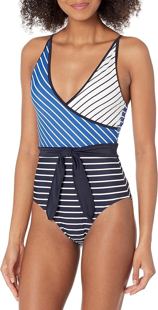 This swimsuit is a dream! The surplice neckline is so flattering, and the soft removable padding makes it comfortable without sacrificing style. The 4-way stretch fabric fits perfectly, and the UPF 50+ protection is a huge bonus. Love the classic blue and white stripes—it’s chic and timeless. The adjustable straps ensure a great fit, and the quality feels luxurious. An amazing deal for a designer piece that looks and feels expensive!