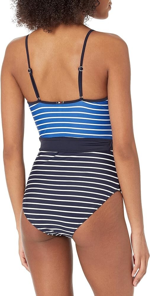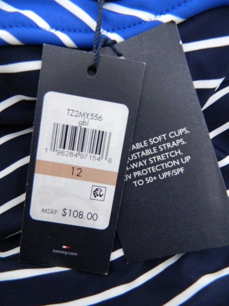 NEW WITH TAGS Retail $108 Overstock from major dept. store Price Tag may be marked/sticky PLEASE ALLOW FOR SOME COLOR VARIANCE DUE TO LIGHTING & VIEWING DEVICES Blue/White Stripe Style: TZ2MY556 ONE PIECE SWIMSUIT 4-Way Stretch UV Protection 50+ upf/spf SURPLICE NECKLINE Soft Removable Padding No Underwire/No support Should fit a C/D Cup (estimate) High Back Over shoulder adjustable straps Moderate Rear Coverage FULLY LINED 82% Nylon 18% Spandex PLEASE ASK QUESTIONS PRIOR TO PURCHASING CHECK OUR eBay STORE FOR MORE GREAT VALUES! WE DO OUR BEST TO SHIP WITHIN 1 BUSINESS DAY THANK YOU!