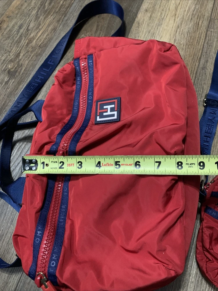 This set of two Tommy Hilfiger Sport Travel Tote Bags is a must-have for any stylish and practical traveler. These bags feature a classic designer pattern with the iconic Tommy Hilfiger logo in red, white, and blue. The bags are made of high-quality canvas material and come with double handles and a crossbody strap for easy and comfortable carrying. The bags have a zip closure and are lightweight, making them perfect for travel. They also feature inner pockets and a navy lining with logo, ensuring that your belongings are safe and organized. With their medium and small sizes, these tote bags are perfect for any occasion and are sure to make a statement wherever you go.