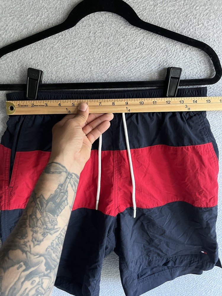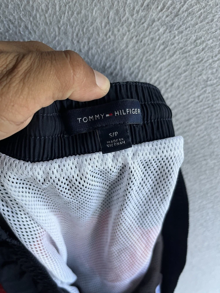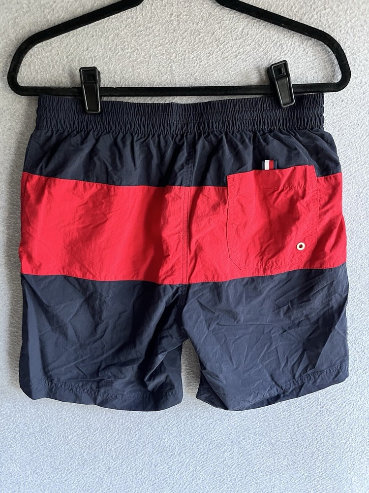 Department: Men Size Type: Regular Swim Bottom Style: Trunks Pattern: Striped Type: Bottom Brand: Tommy Hilfiger Color: Multicolor Lining Material: Polyester Size: S Material: 100% Polyamide Theme: Logo Performance/Activity: Recreational, Surfing, Lifeguard Country/Region of Manufacture: Vietnam Garment Care: Machine Washable Features: Lined, Drawstring, Pockets Vintage: No