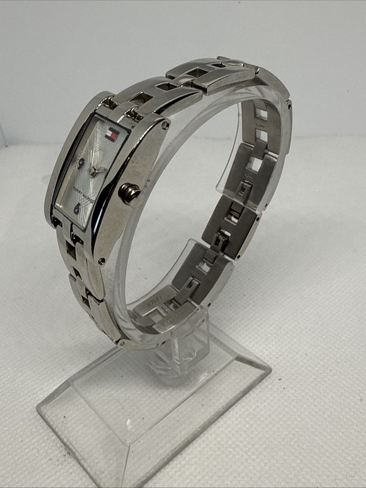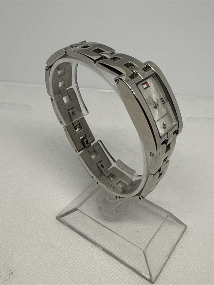Elevate your style with this classic Tommy Hilfiger T00197 women's quartz watch. The silver stainless steel case and band give it a sleek and timeless look that is perfect for any occasion, whether casual or formal. The white dial with Arabic numerals and 12-hour dial makes it easy to read the time at a glance. This watch has a water resistance of 30 m (3 ATM) and features a quartz movement for accurate timekeeping. Its customized design and dress/formal style make it a must-have accessory for any fashion-forward woman. With its elegant silver bezel color and analog display, this Tommy Hilfiger watch is a true statement piece.