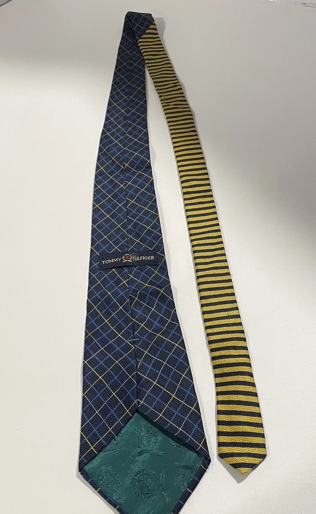 Tommy Hilfiger Tie Plaid and Stripes Blue with Yellow lines.
