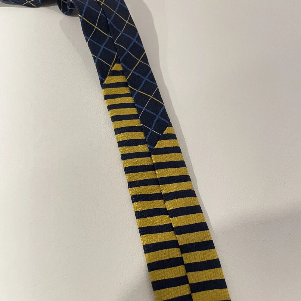 HomeTommy Hilfiger Tie Plaid and Stripes Blue with Yellow lines.