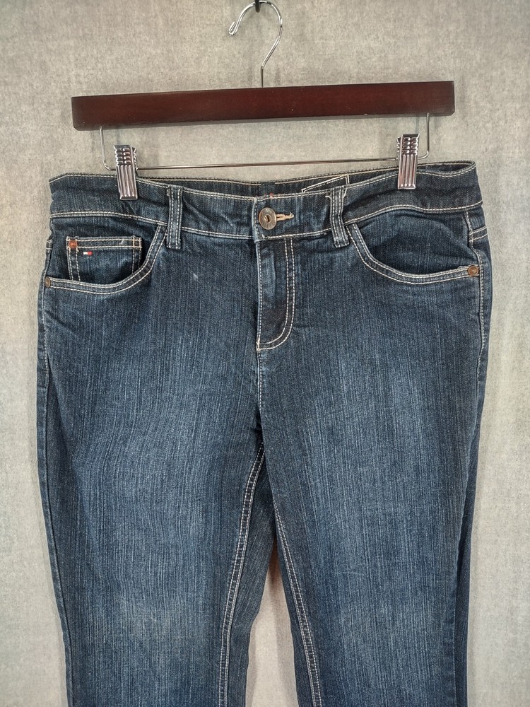 Tommy Hilfiger Jeans Womens 8S Stretch Mid Rise Boot Blue Distressed Denim 28.2" Inseam 16" Waist side to side 9" Mid Rise CONDITION - Excellent pre-owned condition. See the photo gallery to view the item you are purchasing and its condition. SHIPPED - USPS First Class Mail RETURNS accepted, must be returned within 30 days in original condition to receive a full refund. SHIPPING AND HANDLING We ship all packages within five business days Monday through Friday except Holidays. Consolidated shipping is available for multiple purchases. Thank you for helping our planet and buying previously owned and loved items. I am grateful for your business. Enjoy! Check out our eBay store and follow us. There are new listings daily. Disclaimer: While we make every effort to capture the most accurate depiction of every item when photographing, colors may vary from screen display to in person therefore we cannot guarantee "exact shade" on any item. Message us if you have questions.