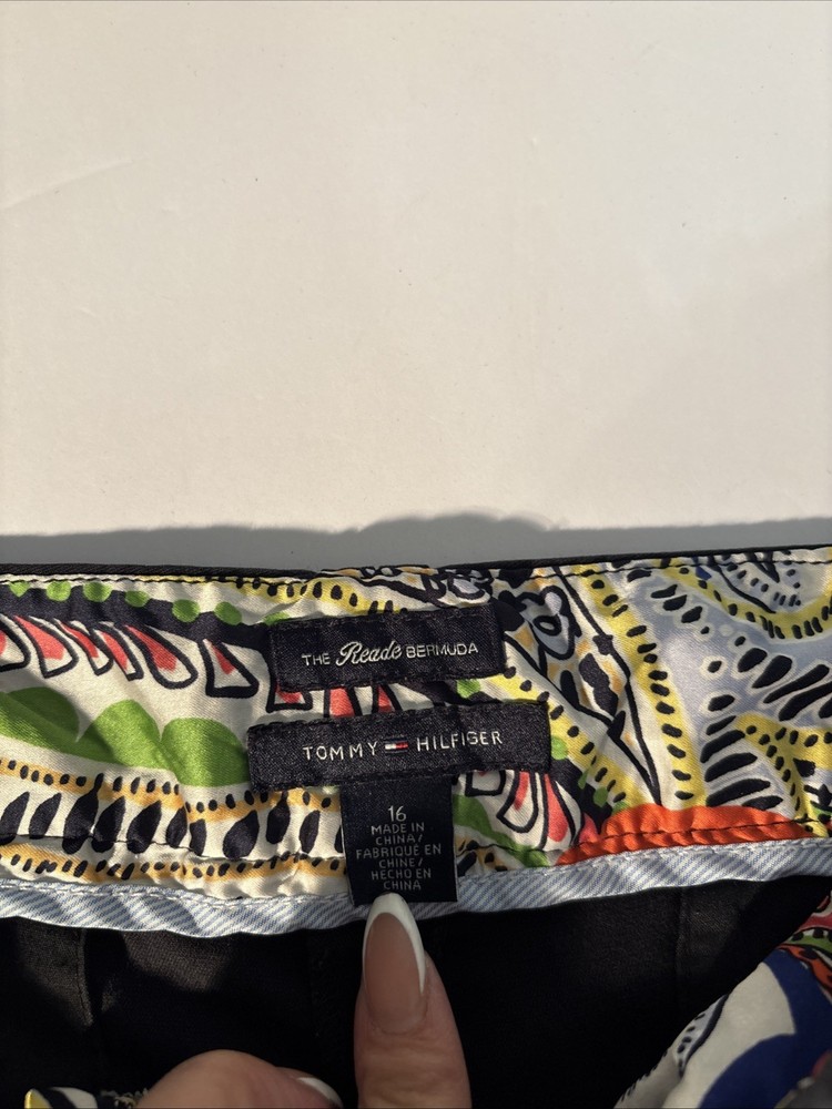 Elevate your casual wardrobe with these stylish Tommy Hilfiger women's Bermuda shorts. The Reade shorts feature a solid pattern and a flat front with a mid-rise waist of 36 inches and a 10.5-inch inseam. The blend of 60% cotton, 39% lyocell, and 1% elastane makes them comfortable to wear, and the button closure adds a touch of elegance. The Tommy Hilfiger Bermuda shorts come in a beautiful blue color and have several accents, including pockets and a button. They are perfect for any occasion, whether it's a summer outing or a casual fall or spring day. These shorts are machine washable, making them easy to care for. Add them to your wardrobe today and enjoy the comfort and style they offer.