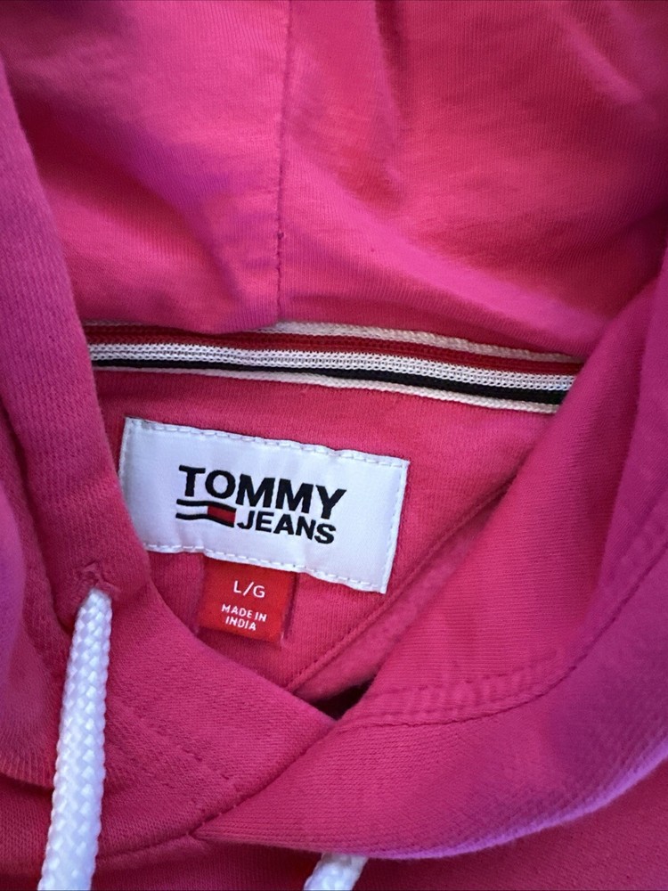 This Tommy Hilfiger Sport Sweater is a women's pink hoodie in size L made of polyester and rayon. It features a full zip closure and long sleeves, making it suitable for activewear during various seasons such as winter, summer, fall, and spring. The hoodie is designed with a hood, Tommy Hilfiger logo accents, and is styled with a regular fit, perfect for activities like walking, beach outings, volleyball, hiking, and running & jogging. 1255