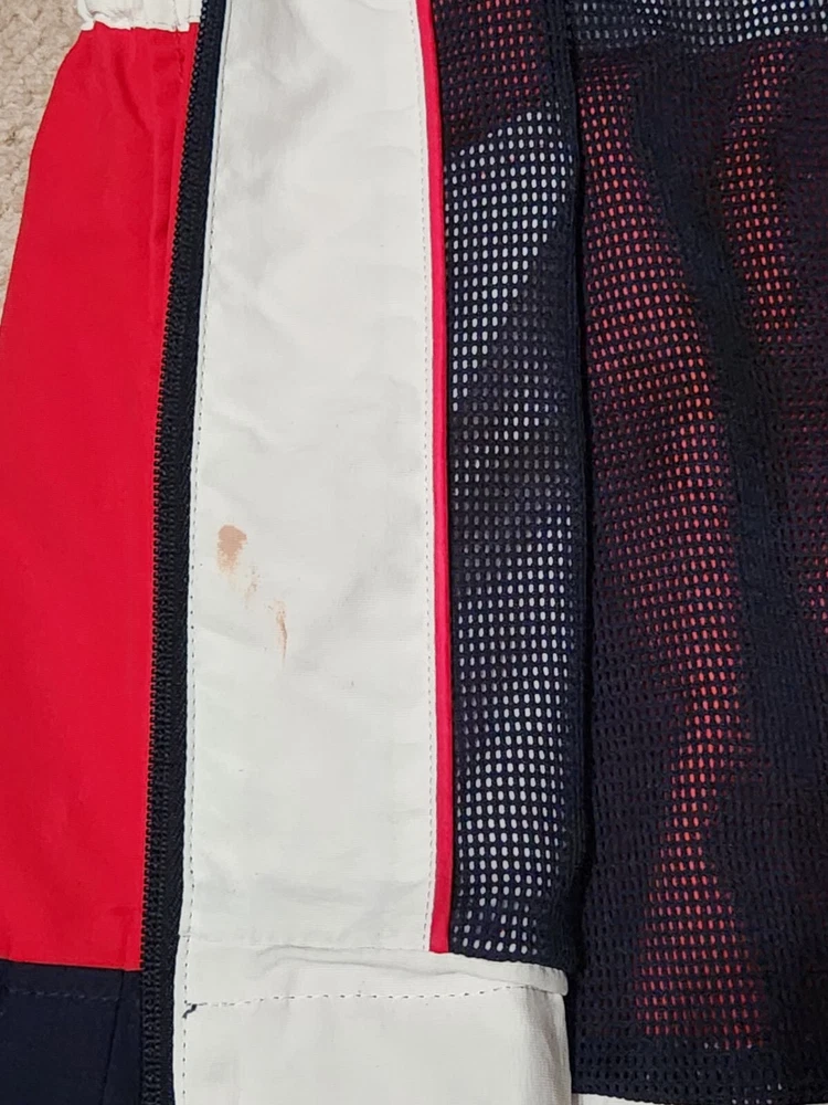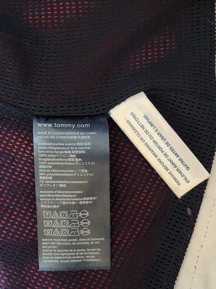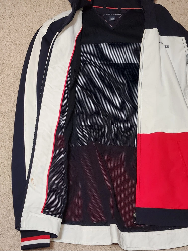 Love this windbreaker! It’s lightweight, stylish, and super easy to pack—great for travel or everyday use. The minor stain inside is barely noticeable, and the fit is perfect. The hood adds extra convenience, and the classic Tommy Hilfiger look never goes out of style. Highly recommend for anyone wanting a reliable, chic jacket!