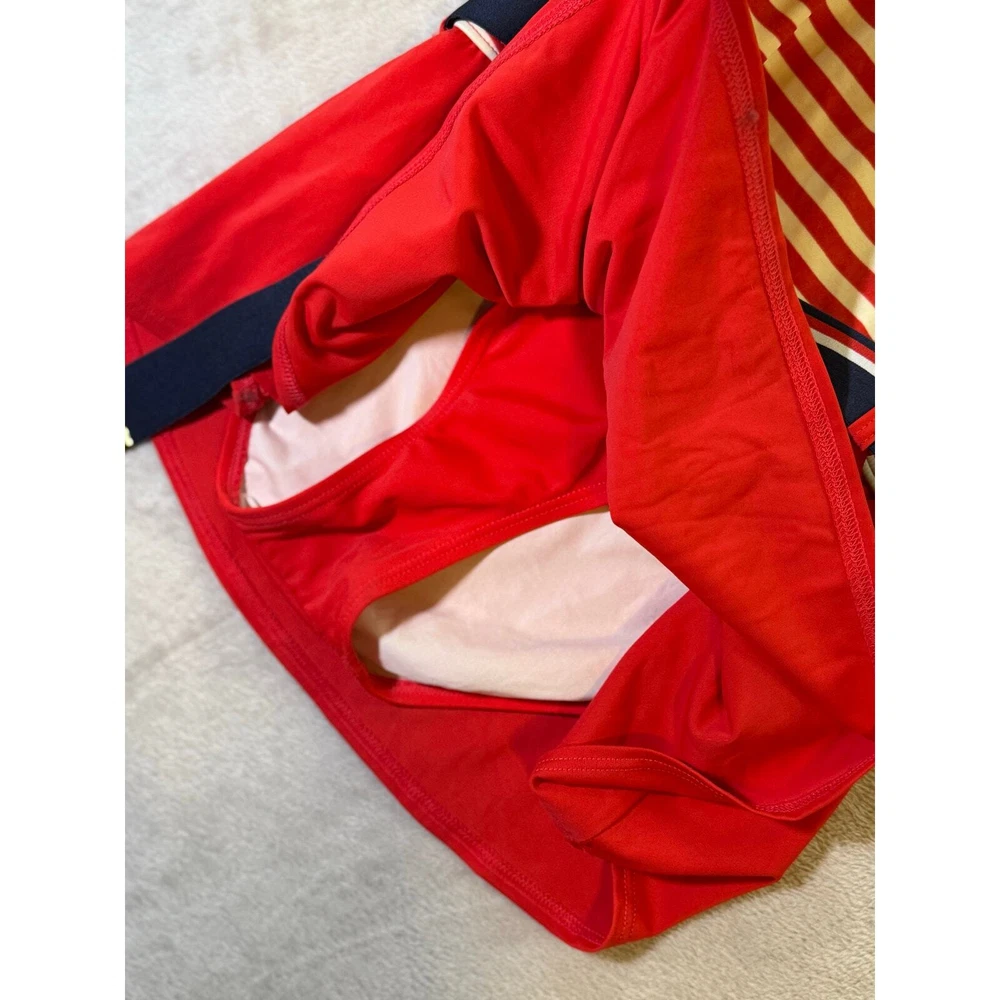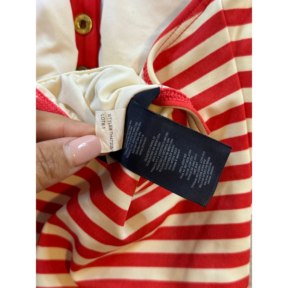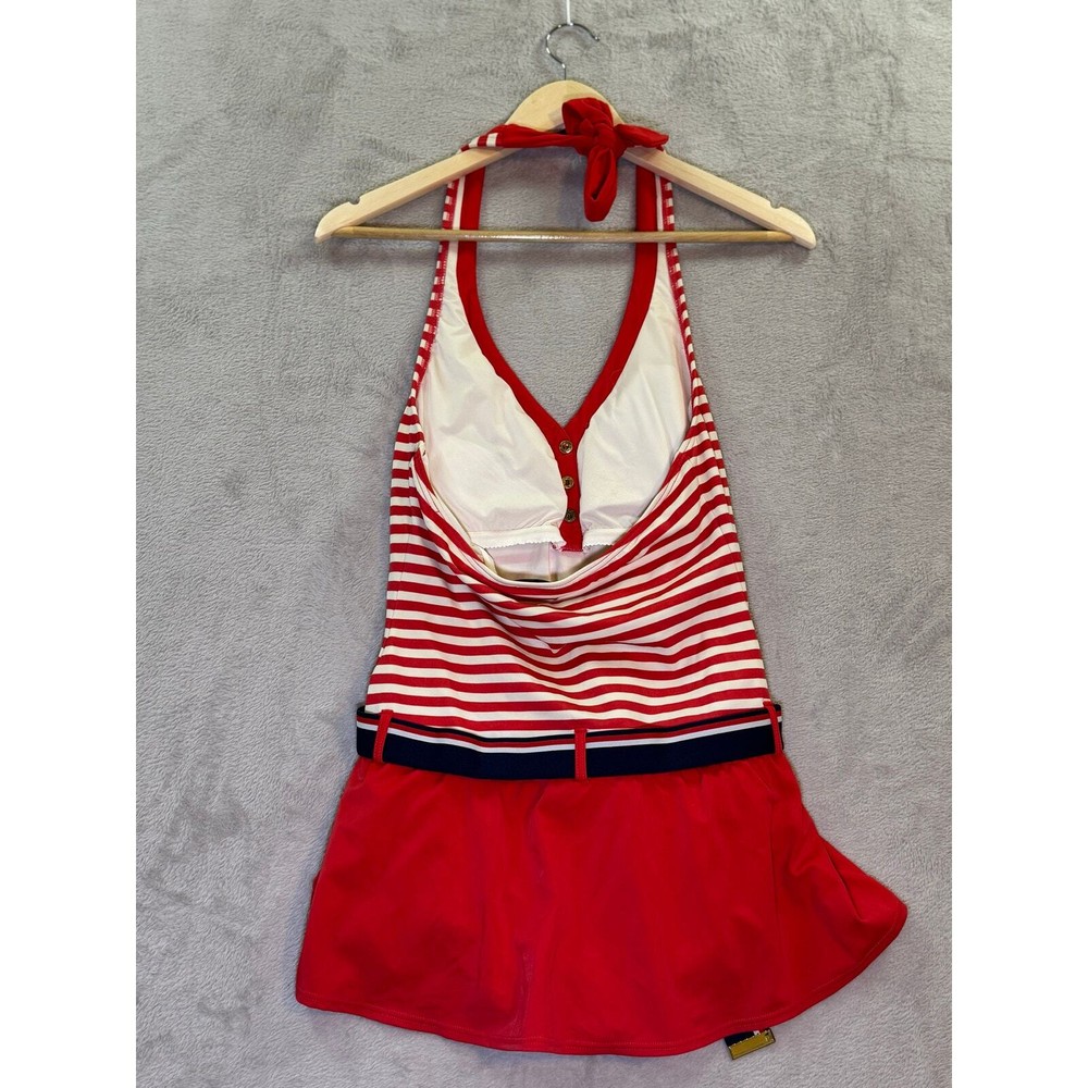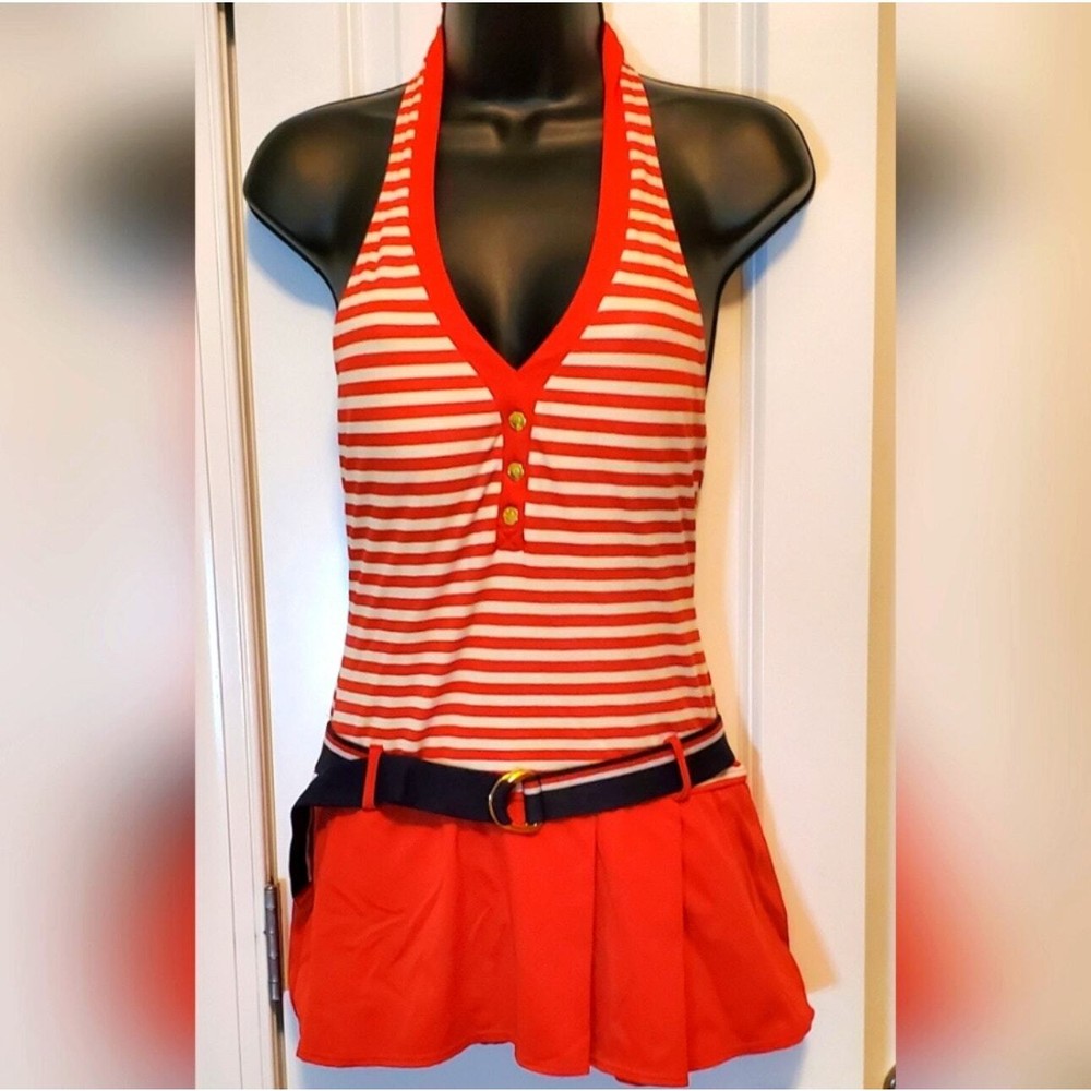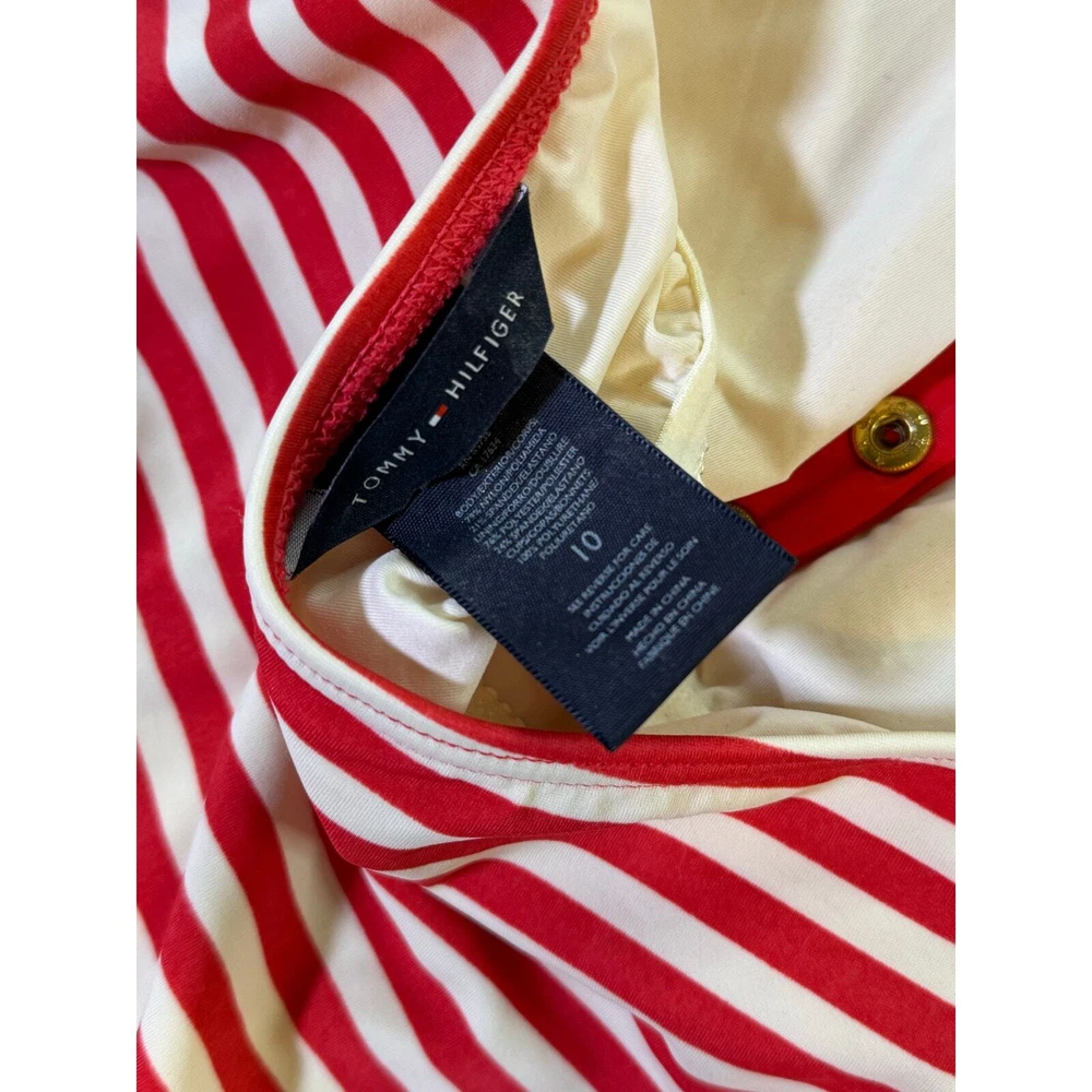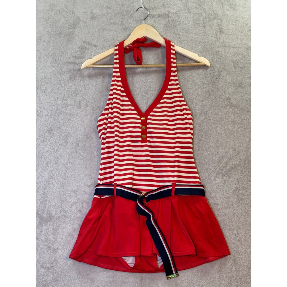Tommy Hilfiger Striped Belted Tennis Club Swimdress Size 10 Red Halter Drop Waist All items are pre-owned unless noted otherwise. Any flaws will be shown in the pictures. Note that vintage items are not new and may have minor imperfections. Please take a close look at all photos and feel free to ask any questions before buying. Same day or next business day shipping out is guaranteed once payment is received.