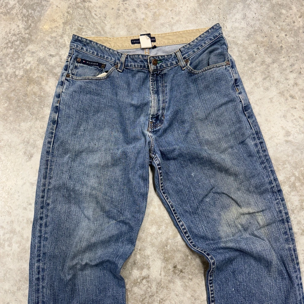 Tommy Hilfiger mens 34x32 y2k jeans distressed denim blue baggy Faded skate