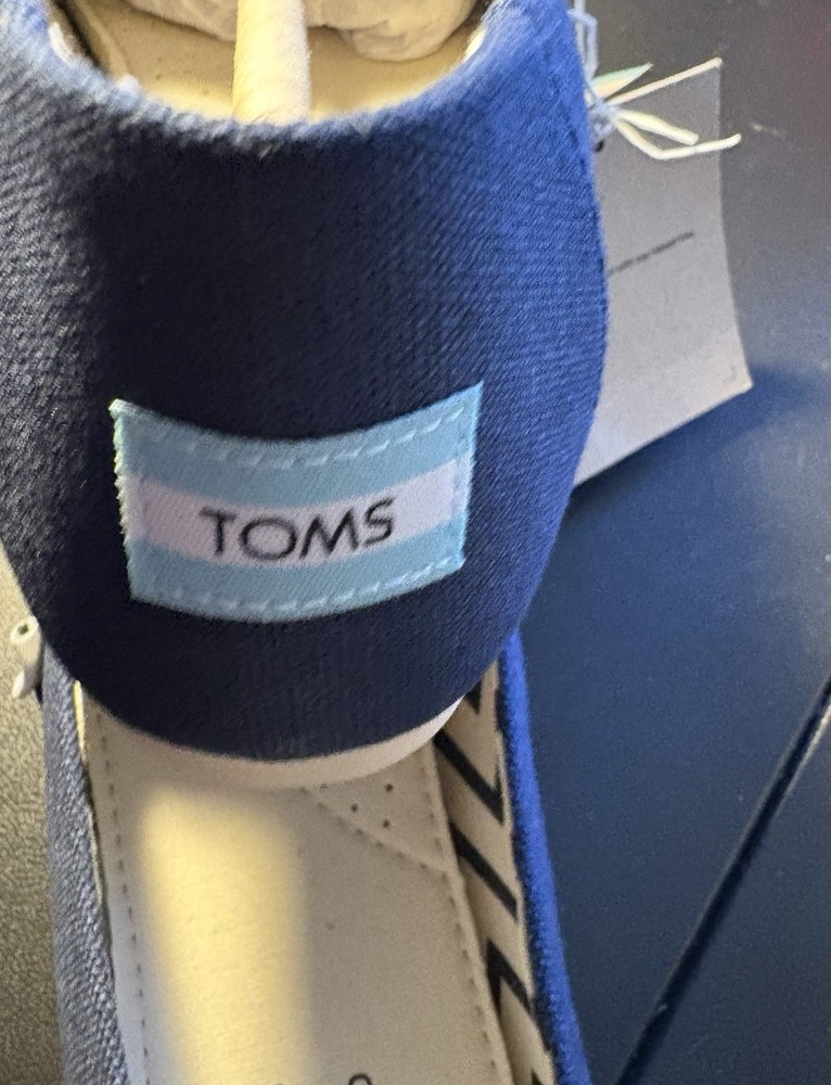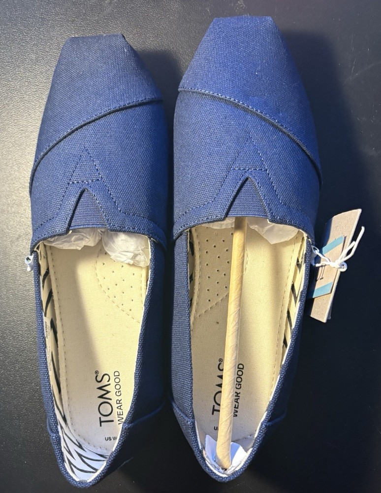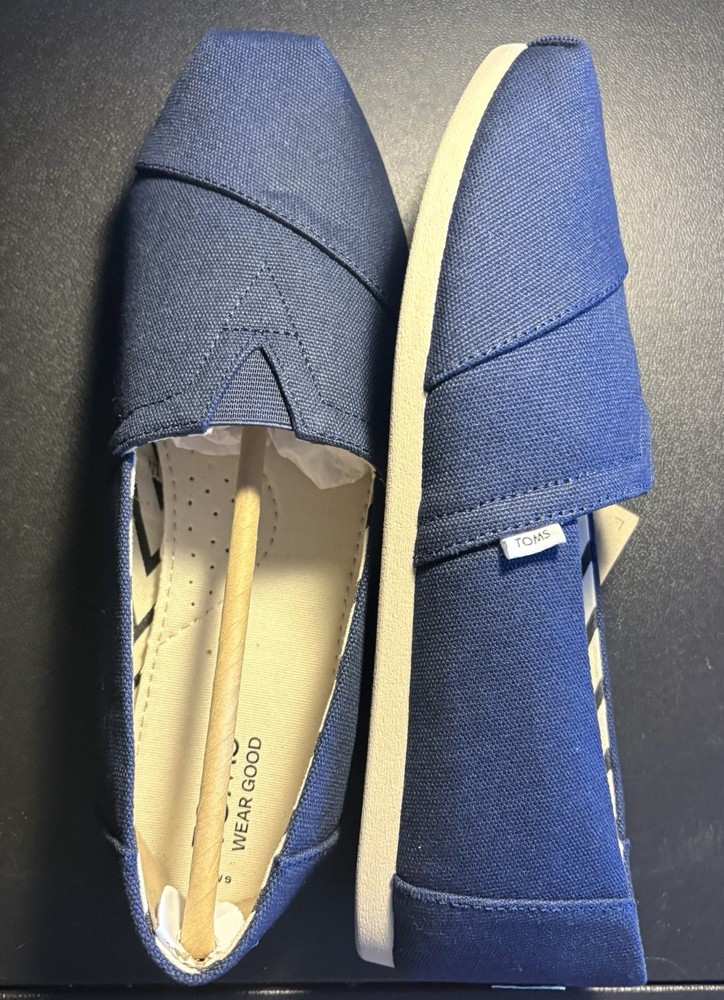 The Toms Women's Alpargata Slip On Casual Shoes in Blue, Size 9 are a stylish and comfortable footwear option for women. Featuring a round toe shape and slip-on closure, these shoes are perfect for casual occasions and are lightweight with a cushioned insole for added comfort. The synthetic fabric and rubber outsole make them durable for year-round wear, and the solid blue color and TOMS logo accents add a trendy touch to the classic slip-on style. Ideal for all seasons, these TOMS Alpargatas are a versatile and practical choice for everyday wear. New