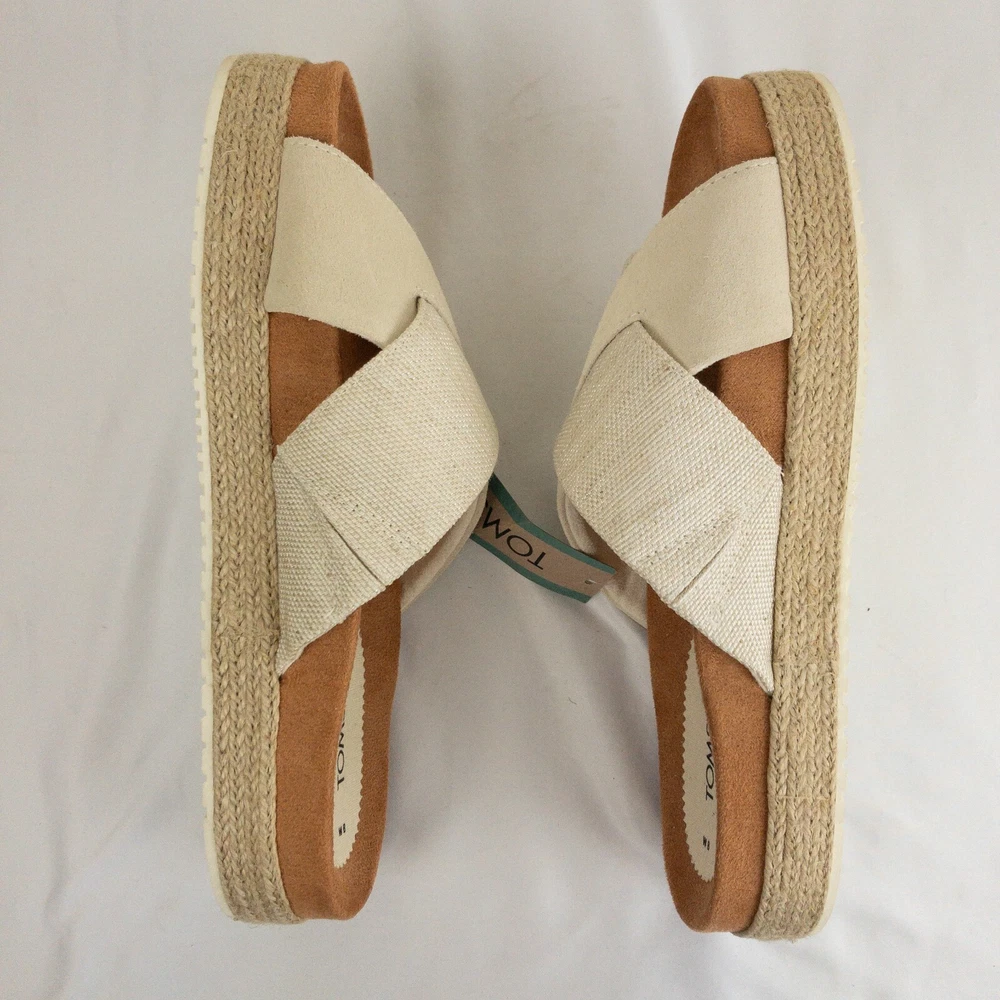 Item Description : Tom's Sandals Notes & Features : Style Name: Paloma Criss Cross Woven bottom Size : Women's Size 8 Measurements : Please see photos. If a measurement is missing, ask and we will get it for you. Condition : New with tags. Flaws : None found. Shipping : We always ship via the USPS with a tracking number ASAP, Monday-Saturday, and do our best to take care of you and the item at ALL times. Please see the Shipping, returns, and payments section for all available shipping options and prices. Packaging : The item is packaged/shipped in a sealed plastic bag inside of a box. Storage : All items are stored in a smoke free home. Any questions? Please ask; we are happy to answer. Thank you for looking!