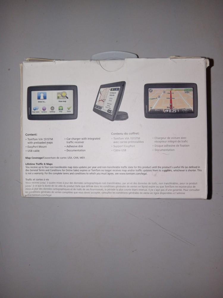 Tomtom Via 1515tm - U.S, Canada & Mexico Lifetime Map & Traffic Updates Used but like new, still with box, car mount, car charger, cord for wall charger and 16gb micro SD card