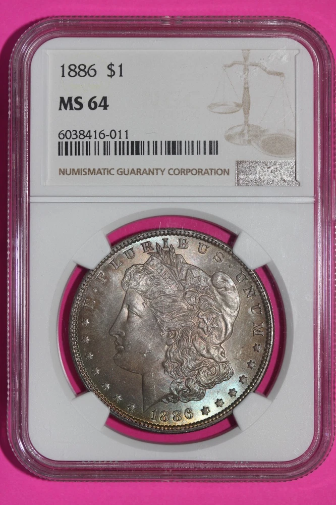 Toned 1896 P MS 64 Liberty Morgan Silver Dollar NGC Certified Graded Slab 413