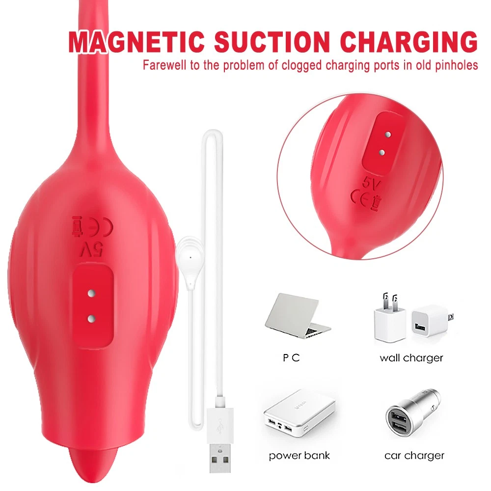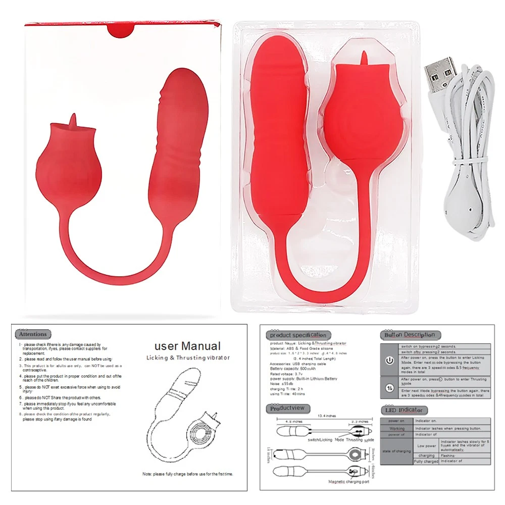 Guarantee 100% discreet shipping on the package and no wirtting on package. P R ODUCT SPECIFICATION: Product Name: Tongue Licking&Thrusting vibrating Egg Material: ABS & Food Grade silicone Product size: as pictures shown Accessories: USB charging cable Battery capacity: 500mAh Rated voltage: 3.7v Power supply: Built-in Lithium Battery Noise: ≤55db Charging Time: 2h Using Time: 40mins KEY FEATURES: Food grade silicone; 7 Stretching modes; 8 Licking modes; Bending easily; IPX7 waterproof BUTTON DESCRIPTION: Open button: Switch on by pressing 2 seconds. Switch of by pressing 2 seconds. After power on, press the button to enter Licking Mode. Enter next mode by pressing the button again, there are 3 speed modes &5 freuency modes in total. Conversion button:After power on, press the button to enter Thrusting Mode. Enter next mode by pressing the button again, there are 3 speed modes & 4 frequency modes in total LED INDICATOR: Power on:Indicator on Working:Indicator flashes when pressing button P ower ofF:Indicator ofF State of charging: Low power:Indicator lashes slowly for 5 times and the vibrator of automatically. Charging: Flashing Fully charged: Indicator off. ATTENTION: 1.Please check ifthere is any damage caused by transportation, ifyes, please contact suppliers for replacement. 2.Please read and follow the user manual before using· 3.This product is for adults use only can NOT be used as a contraceptive. 4.Please put the product in proper condition and out of the reach of the children. 5.Please do NOT exert excessive force when using to avoid injury. 6.Please do NOT Share the product with others. 7.Please immediately stop ifyou feel any uncomfortable when using this product. 8.Please check the condition ofthe product regularly,please stop using if any damage is found. NOTE: Please fully charge before use for the frst time. PACKAGE: 1*Vibrator Massage 1*Charging cable