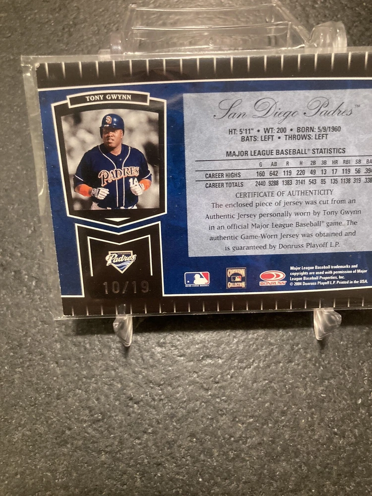 Tony Gwynn 2004 Leaf Certified Dual GAME JERSEY 10/19