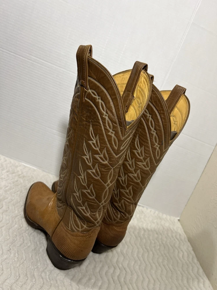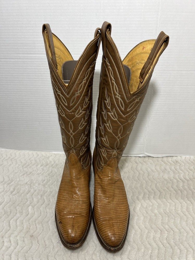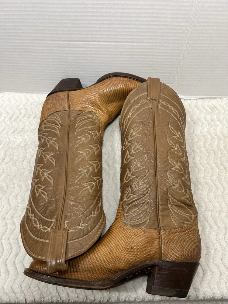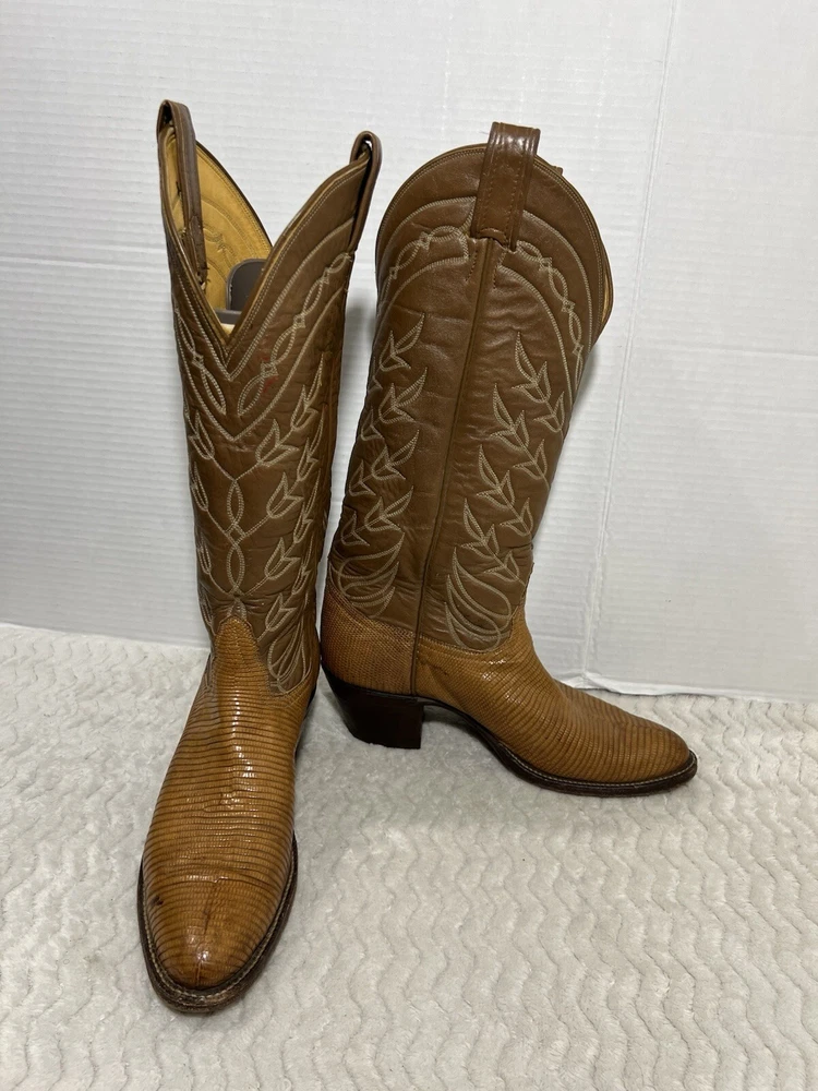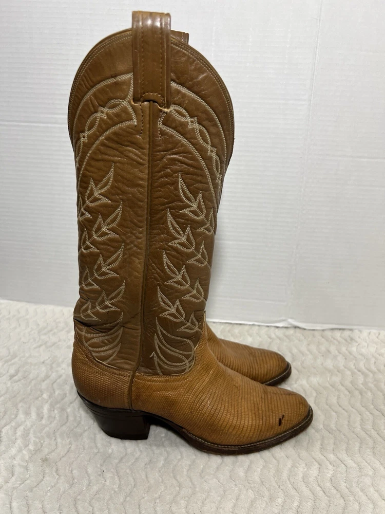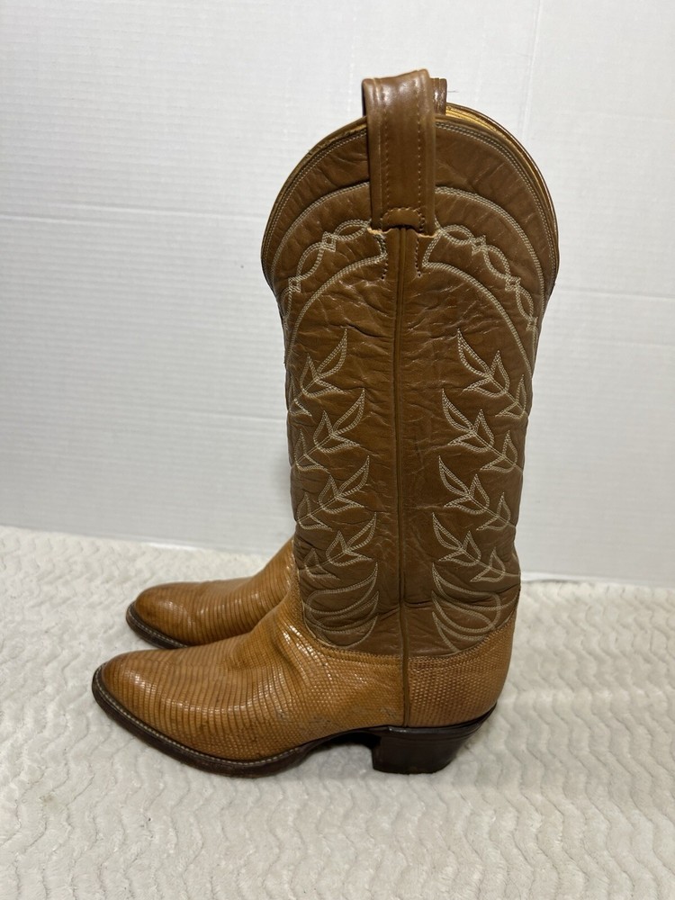 Tony Lama Women’s Size 6B Brown Leather Lizard Western Cowgirl Boots. Boot is in used condition and has signs of wear but boot is still in great condition. Upper leather is in great condition and clean , inside is clean and the soles are in great condition. Nice comfortable cowgirl boots for casual wear. Condition is pre-owned. Shipped with usps priority mail. Sold as pictures. Thank you! Feel free to message me for any questions. Thank you
