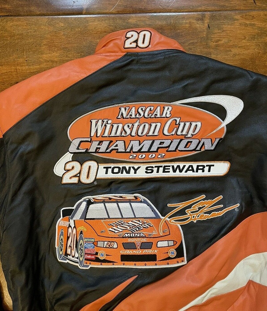 Tony Stewart #20 Home Depot Racing 2002 Cup Champion Leather Race Jacket Mens Size Large NASCAR New JH Design Brand New with tags!! Condition can be seen in the photos. Actual items shown in the photos. This jacket is very very rare and hard to find in this new with tags condition. Top to Bottom: 26 in Pit to Pit: 24.5 in Shoulder to Shoulder: 22 in Sleeve (From shoulder to end of sleeve): 24 in 100% Authentic NASCAR gear!! Ships within 1 business day of payment being received!! We ship with care! Checkout my other items for sale for other NASCAR gear, clothings, hats, sports memorabilia and much much more!! Don't hesitate to ask any questions!!