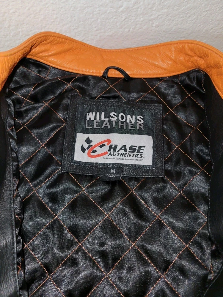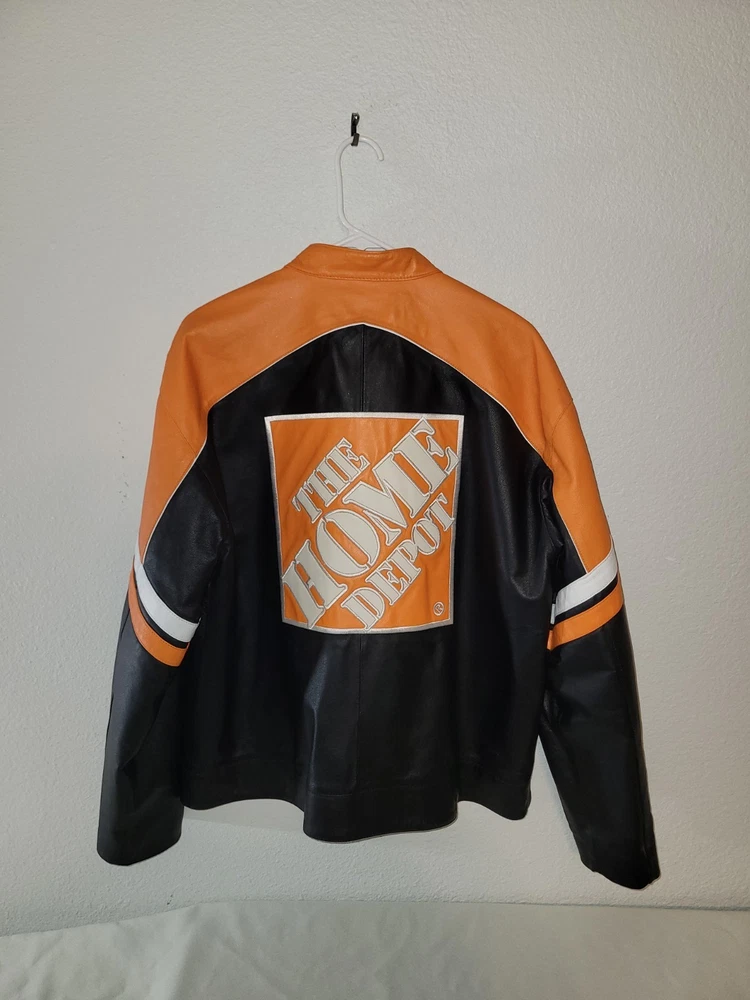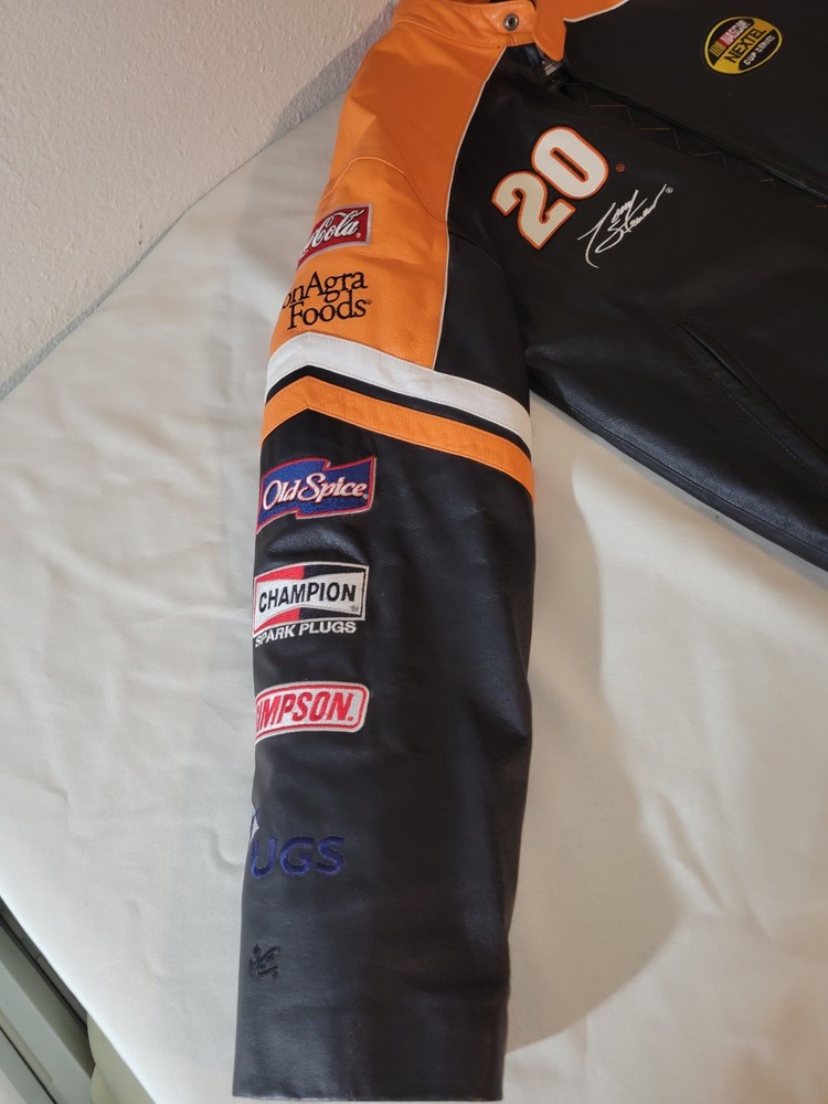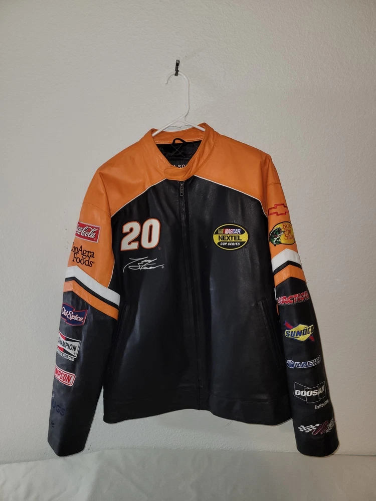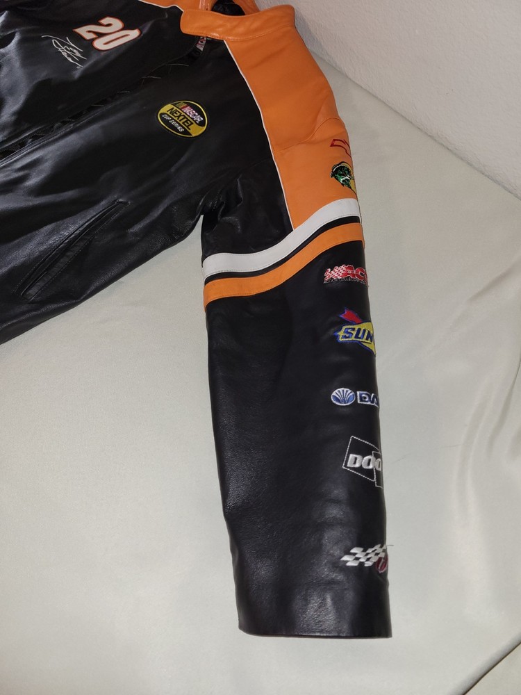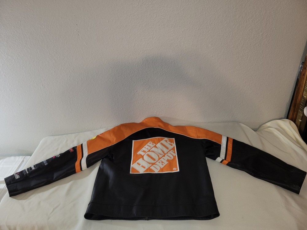 Tony Stewart #20 Home Depot NASCAR Wilsons Leather Chase Authentics Jacket – Size M – Pre-Owned Show off your racing pride with this Tony Stewart #20 NASCAR Nextel Series Leather Jacket, officially licensed by Chase Authentics and crafted by Wilsons Leather. This bold and collectible piece features the iconic Home Depot sponsorship branding, team colors in black, orange, and white, and detailed embroidery throughout, celebrating one of NASCAR's most legendary drivers. Condition: Pre-owned; well-maintained with minimal signs of wear Size: Men's Medium Color: Black, orange, and white Material: Genuine leather exterior with full lining Brand: Chase Authentics by Wilsons Leather Design Features: Embroidered Tony Stewart #20 graphics NASCAR Nextel Series and sponsor logos Snap-front closure with rib-knit cuffs and hem A must-have for collectors and racing enthusiasts, this limited-edition jacket is both a stylish tribute and a piece of NASCAR history.