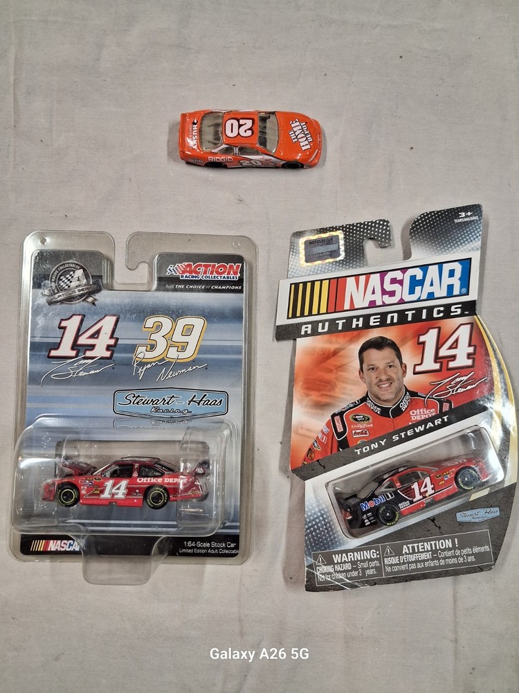 The product is a collection of three Tony Stewart Home Depot #20 NASCAR memorabilia items, including two new and one used item. These officially licensed collectibles feature the iconic multi-color design associated with the Stewart-HAAS team. As a unisex adult size item, this memorabilia is perfect for any fan of auto racing, specifically NASCAR, and driver Tony Stewart. Perfect for displaying or adding to a memorabilia collection, this product is a must-have for any fan of the sport.