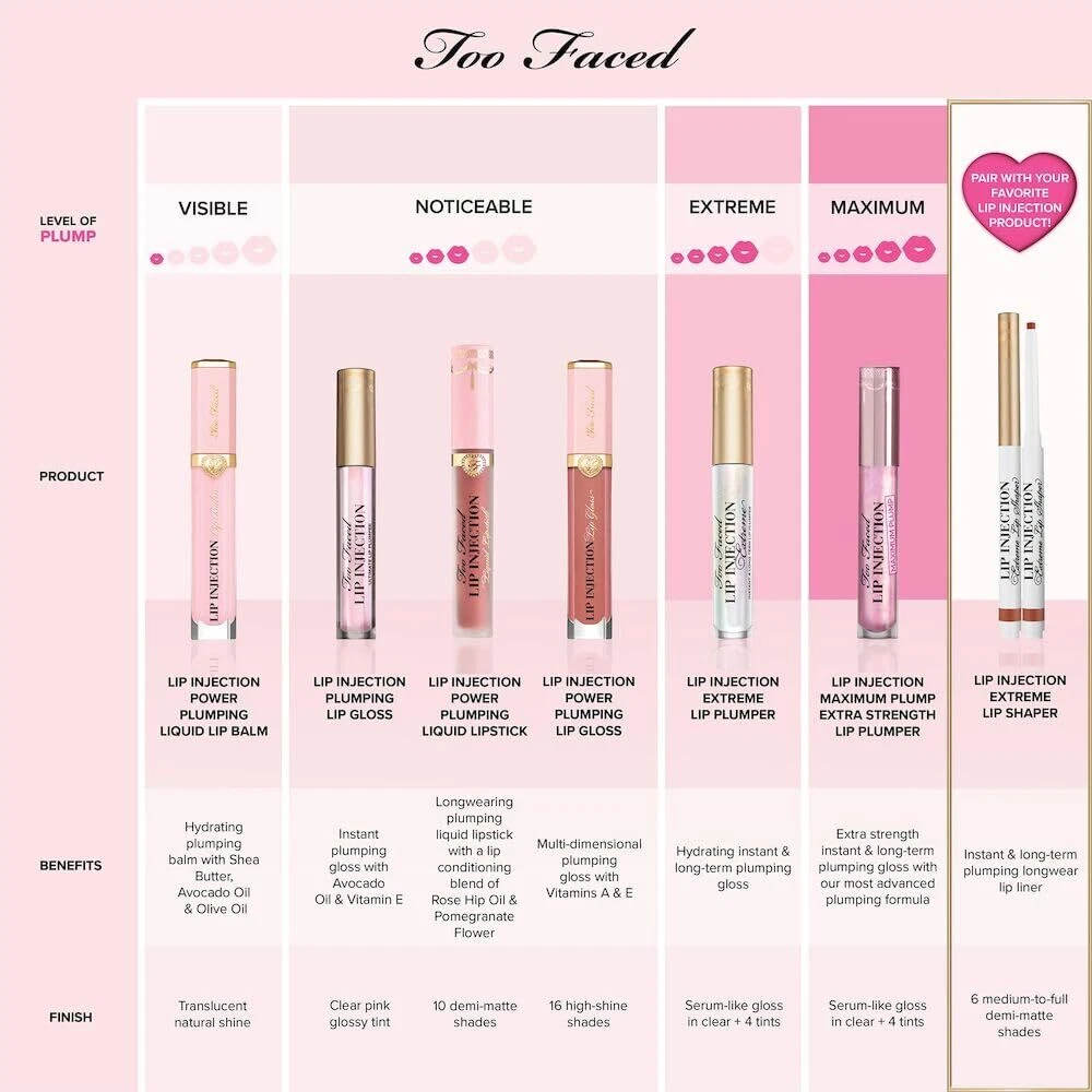 Too Faced Lip Injection Power Plumping Lip Gloss Stars Are Aligned 0.22 Fl. Oz. A plumping lip gloss that drenches lips in a beautiful, plush, multidimensional, juicy color. This lip gloss is formulated with Too Faceds scientifically advanced lip-volumizing technology, which delivers immediate, proven results with a blend of powerful hydrators that help your pout appear fuller, plumper, and smoother from the very first swipe. Features A plumping lip gloss that visibly plumps for a fuller pout Available in glitter, high-shine and shimmer finishes This hydrating and smoothing formula is vegan Cruelty Free Furever and Always Fast and Free Shipping You're already purchasing the item. Why pay additional for shipping, especially slow shipping? We get your order shipped out within 1-business day and delivered to your doorstep as quickly as possible. Competitive Pricing With our dynamic pricing model, our prices are always competitive. Our prices are some of the lowest that you will find on the internet. Rest assured that you're getting a good deal when purchasing with us. 30-day Money Back Guarantee We are committed to making sure that you leave this transaction satisfied. If you're unhappy with the product for any reason, you may return it back for your money-back or a replacement within 30 days. No questions asked!