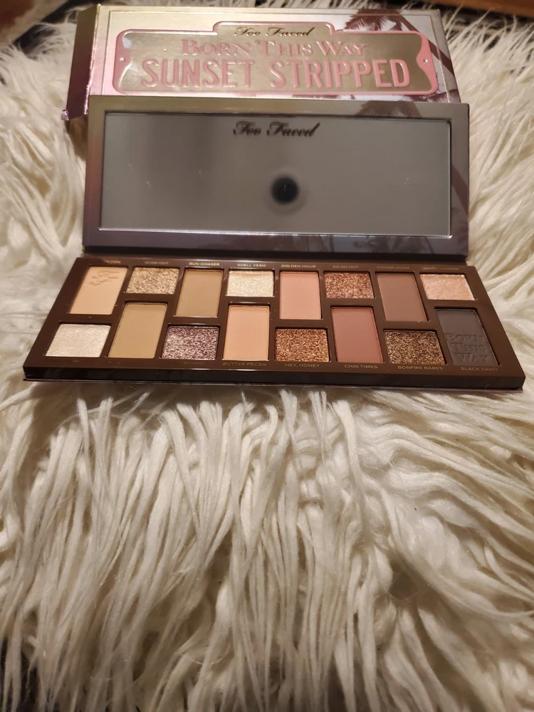Bring sunset-inspired warmth to your makeup looks with the Too Faced Born This Way Sunset Stripped Palette. Featuring 16 rich and creamy nude shades, this palette is perfect for creating modern, everyday glam or dramatic eye looks. Palette Features: Authentic Too Faced palette 16 warm, modern nude shades Blend of highly pigmented matte and metallic finishes Smooth, creamy formula for easy application and long-lasting wear. Inspired by sun-kissed skin and infused with coconut water to help replenish skin moisture Perfect for natural daytime looks or bold evening glam. Ideal for makeup lovers, collectors, or professional artists looking for versatile, neutral-toned shades. ⭐ Fast shipping ⭐ Great deal ⭐ Buy with confidence Don’t miss your chance to own this popular and limited Too Faced palette—grab it before it’s gone!