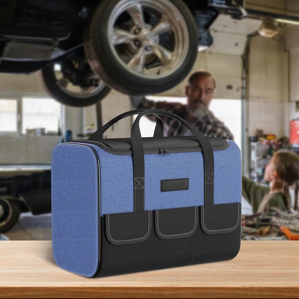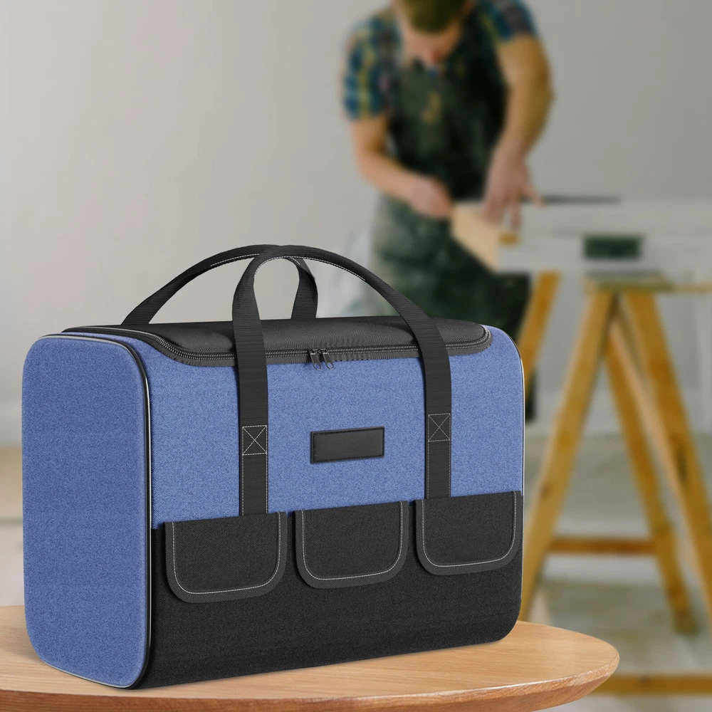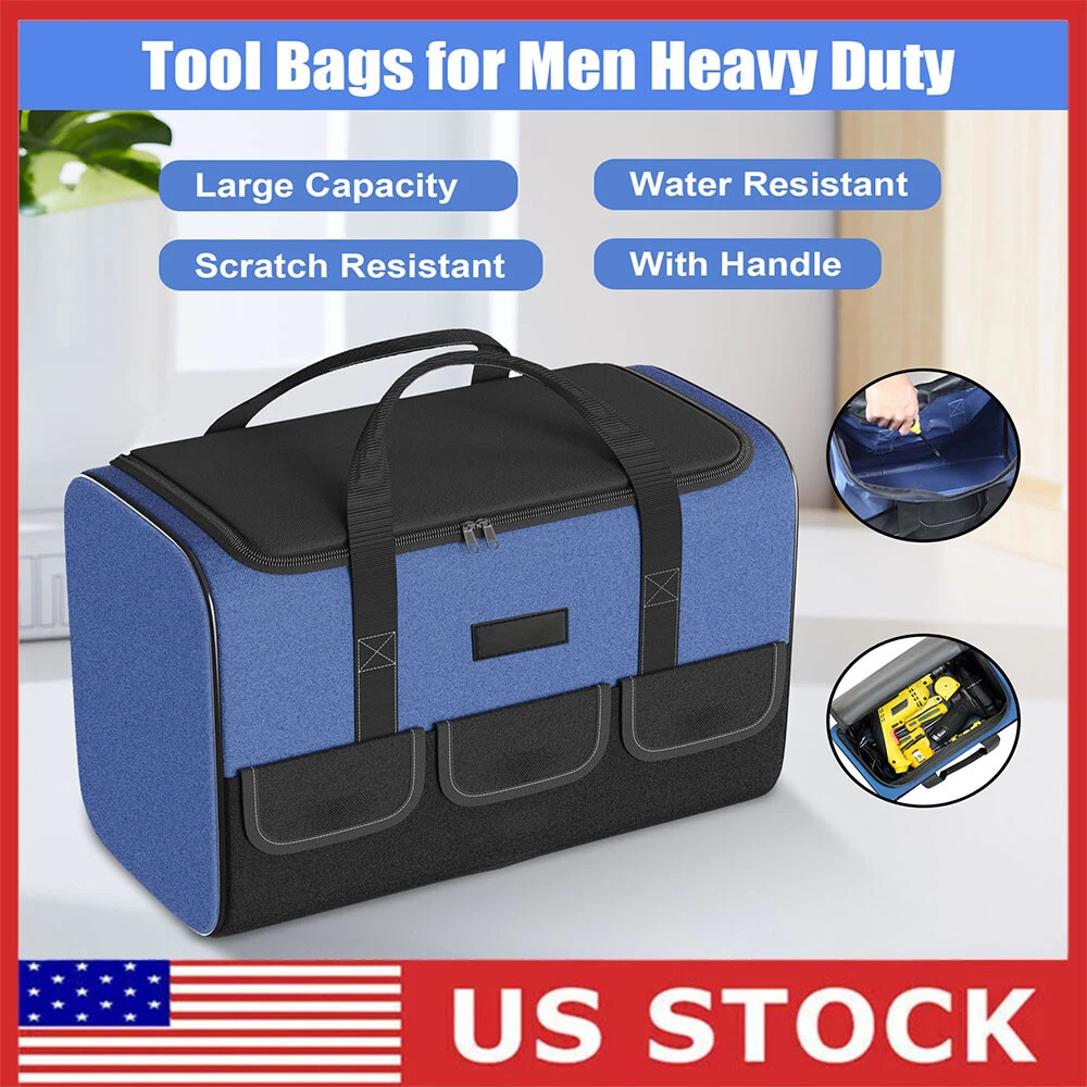 Product Description Bout this item: 👷♂️ Keep Your Tools Organised: with our tool bag designed for DIY enthusiasts and craftsmen. This tool bag is perfect for storing and organising your tools and materials. 👷♂️ High-quality Materials And Structure: Our tool bag is made of 5 layers of 1680D Oxford fabric, providing excellent durability and stability. Waterproof, finely stitched, and able to withstand heavy use. 👷♂️ Large Space and Multiple Pockets: Our tool bag features 1 strong inner pocket and 5 outer pockets, providing ample space to store various tools and materials. It is robust and versatile. 👷♂️ Multifunctiona Tool Bag : Ideal for DIY enthusiasts and craftsmen, but also for electricians or plumbers. It offers a practical solution for storing and organizing tools effectively. Specification: Material:‎Polyester Color :Blue Size: 16.93x9.25x11.8 inch Water Resistance Level:Water Resistant Number of Compartments:5 Included Components: ‎1 Tool Bag powered by