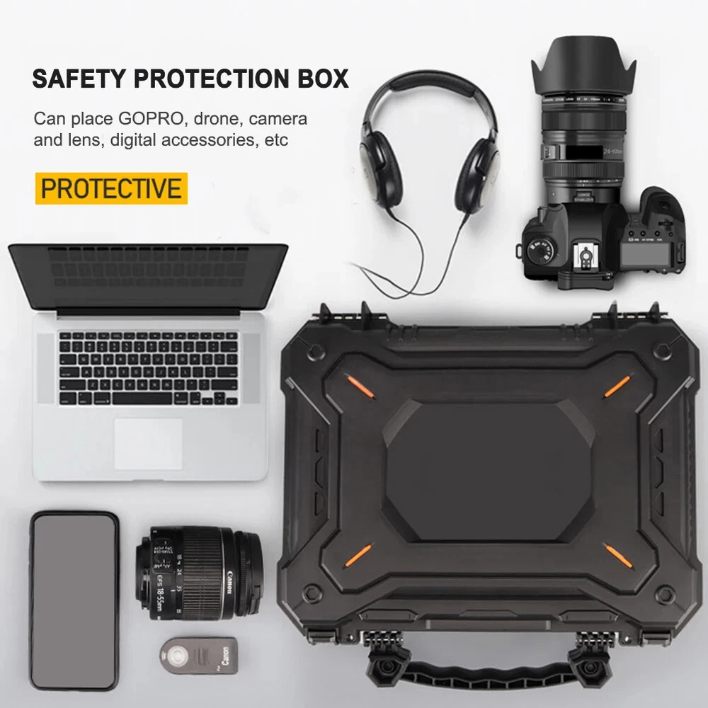Camera Protective Case Portable Protective Equipment Safety Case Waterproof Dustproof with Foam Padded Fishing Hiking Handbag Feature: 1. Durable: The safety box is made of ethylene propylene polymer, with a waterproof and durable hard shell that can withstand harsh environments. 2. Custom Storage Space: 5L custom storage space. Fully customizable pull-out foam inserts to meet your specific needs. 3. Safe & Lockable: Reverse lock and dual anti-theft lock holes make your device more secure. 4. IPX-7 Waterproof Grade: Our hard shell is waterproof and dustproof. Ring gaskets block moisture, sand, and dust, ensuring the safety and dryness of valuable equipments. 5. Satisfaction Guarantee: We strive to provide each customer with the highest standard of customer service to ensure you have a pleasant shopping experience. If you have any issues, inquiries or need assistance, please feel free to contact us directly. Specification: Product weight: 0.65kg (bare weight) Product size: about 32 * 28 * 8.5cm/12.59 * 11.02 * 3.34 Waterproof performance: IPX-7 Impact resistance grade: IK08 Product material: ethylene propylene copolymer Anti static level: insulation resistance value Product color: black Product capacity: about 5L Applicable temperature: - 40 ° C~80 ° C Product Usage: Used for storing and protecting high-value or high-precision instrument and equipment. Note: Due to the different monitor and light effect, the actual color of the item might be slightly different from the color showed on the pictures. Thank you! Please allow 1-2cm measuring deviation due to manual measurement. Include :1 x Protective Case