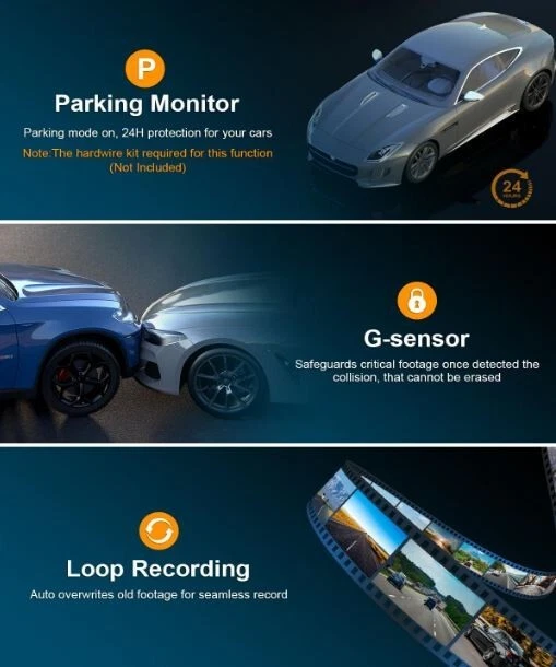 4K Dash Cam Front and Rear with WiFi, GPS, and Night Vision β High-Performance Car Dash Camera π Upgrade Your Driving Experience Capture every detail of your journey with this 4K ultra HD dash cam , designed for crystal-clear video recording. Whether you're on a road trip or commuting, this camera ensures superior image quality. π Dual Lens for Complete Coverage The front and rear dash cameras record simultaneously, providing all-around protection. With advanced night vision, even the darkest roads are captured clearly. π‘ Built-In WiFi and GPS Easily transfer videos to your smartphone using the built-in WiFi and track your routes with GPS functionality. Perfect for drivers who need detailed trip data and evidence for insurance claims. π Advanced Features for Convenience Touchscreen Display for easy operation Hardwire Kit compatible for parking mode recording Wireless Setup options available for hassle-free installation Mirror Dash Cam Design available for a sleek, integrated look π‘ Versatile and Reliable From the 360-degree dash cam for full cabin coverage to dual-channel dash cams with 3 or 4-channel options, this model meets the needs of any vehicle. π Accessories Included Comes with a battery pack , USB cable , power adapter , and mounting kit. Additional accessories like the dash cam hardwire kit and rearview mirror mount are also available for enhanced functionality. π¦ What's in the Box Dash Cam (Front and Rear) Power Cord USB Cable Adhesive Mount π₯ Perfect for Any Car Owner Whether you're a daily commuter or a road trip enthusiast, this dash cam is the ultimate driving companion. Protect your vehicle and capture unforgettable memories. π Popular Models Available Choose from top brands like and more. Models such as the and A119 V3 are in stock. Order now and enjoy secure driving with this all-in-one dash cam solution! This high-quality dash camera offers exceptional video resolution of 4K(F)+1080P(R) and a 12" LCD display for easy viewing. Its rearview mirror mount allows for convenient installation and the camera comes with a free SD card included. The camera also features GPS, G-Sensor & Loop Recording, Parking Monitor, and Night Vision, making it an excellent choice for any car owner. With a single-channel MIC and touch control method, this dash camera is both user-friendly and functional. It has a storage temperature of -20 Β°C -70 Β° C and requires a recommended TF card of 32GB~128GB, Class 10. The camera's sleek black design and compact size of 11.85 x 2.83 x 0.71 inches make it a perfect fit for any car. This dash camera is an ideal addition to your vehicle electronics and GPS system.