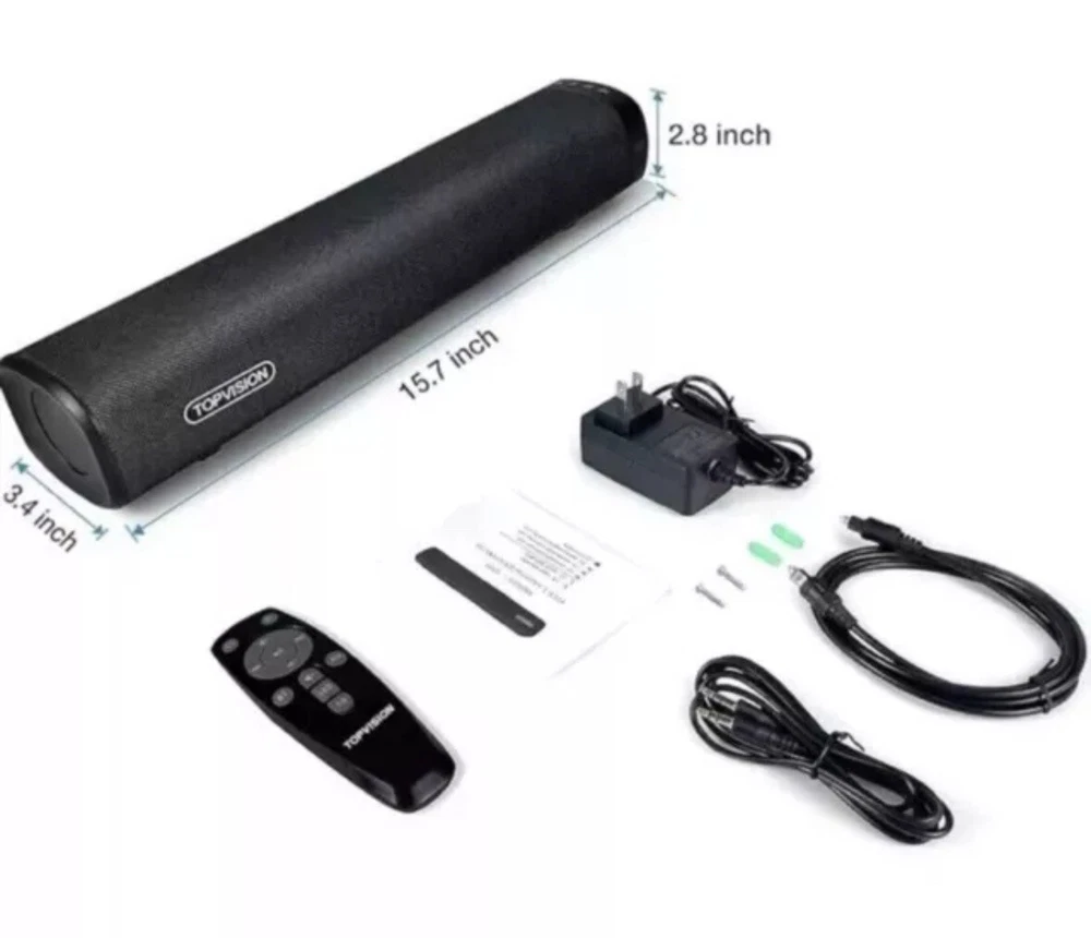 Top Vision Sound Bar Wired & Bluetooth Speaker Dorm Room Small Space Black