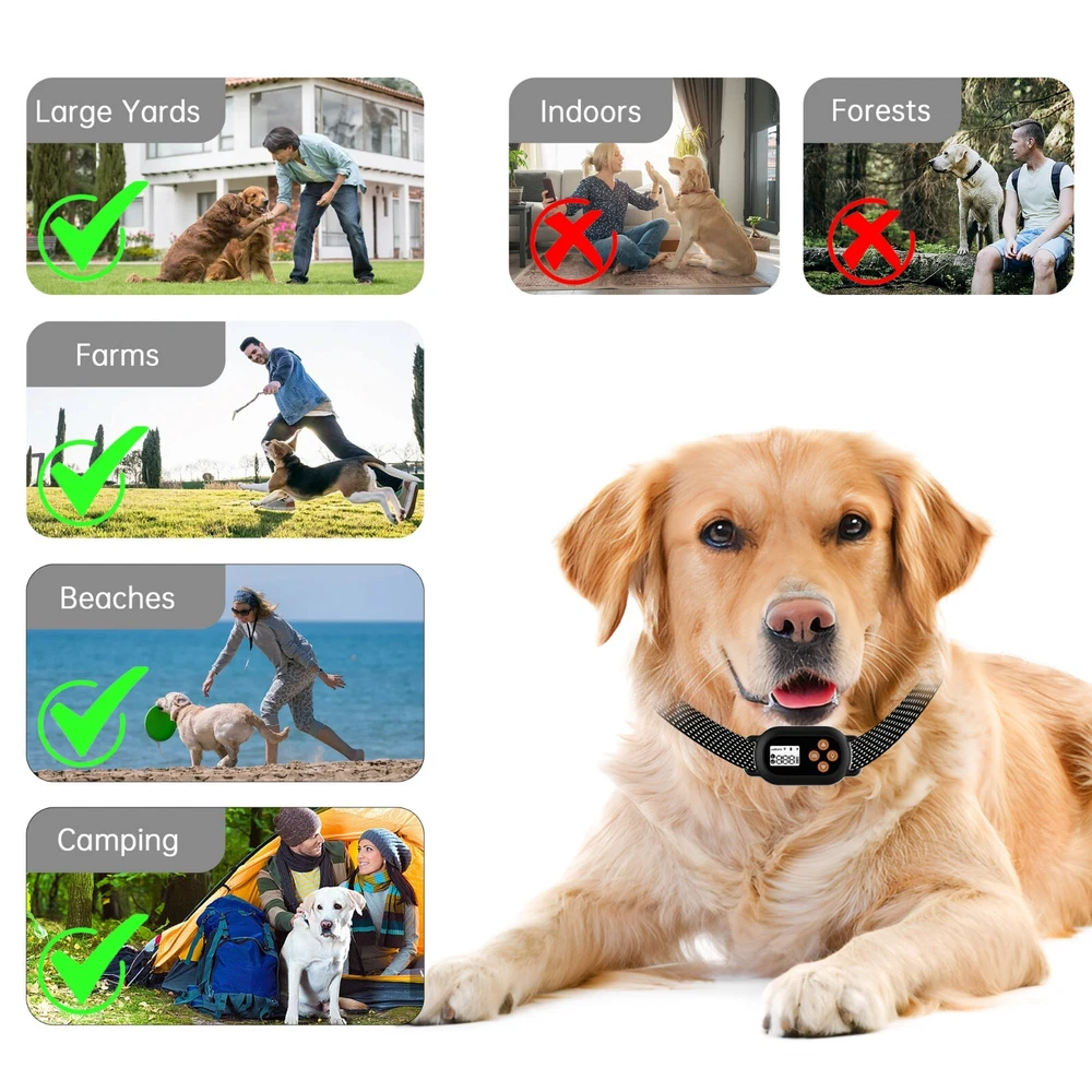 Model F820 improves upon the best-selling F800 model in critical ways: Latest generation GPS computer chip: Offers a stable GPS connection no matter how complex the environment with the ability to connect to multiple satellites at once, ensuring a stable connection whether you are in a dense urban setting or multi-acre property with mixed terrain (i.e. mountains close-by, trees, neighbours, etc). We tested this recently when a buyer based on a 5-acre property in Burpengary, north of Brisbane struggled to maintain a stable connection with the original F800 model but has had no issues at all with the new F820! Shorter Radius for More Domestic Uses: The minimum radius of the new F820 can be set as low as 23-metres from set point whilst the F800 original's minimum is 33-metres. This means more dog owners in smaller properties can benefit from wireless GPS dog fence technology than ever before! 40% Lighter than the Original: The new F820 is only a total of 98g combining collar and belt whilst the original F800 is 158g. This offer more versatility for fitting on small to medium dogs and less strain on your dog's neck overtime. Multiple Software Upgrades: F820 features the latest software upgrade with intelligent scene recognition, weak signal compensation, anti-interference and enhanced automatic dog protection mode. HOW IT WORKS Set up the central starting point for the e-collar and distance to the boundary. Minimum radius is 25 yards (approx 22m) and maximum radius is 999yards (approx 913metres). Install boundary flags a safe distance from the boundary limit. This is where you want the collar to warn your dog about progressing further before static or vibration correction. Choose whether you prefer to use vibration or static correction modes and if you want the collar to automatically increase the intensity level or fix it yourself at a specific level. Spend time training your dog to recognise the boundary flags and what to do when they hear the warning (training guide supplied). PRODUCT HIGHLIGHTS New lightweight design with latest generation GPS chip for best-ever stability in complex environments. New software upgrades for more effective boundary training, enhanced dog protection and more efficient power usage. Create a circular boundary around your property with radius distance from 25-metres (25 yards) to over 900-metres (999 yards). Flexible training with the choice of using vibration or static correction with five levels of automatic correction sequence. Intuitive boundary training correction automatically increases in intensity from levels 1 to 5, depending on the dog's behaviour. IPX7 completely waterproof e-collar allows your dog to take short swims or stay outside in any weather. Large 700mAh rechargeable Li-ion battery plus enhanced signal stability provides power to the collar for up to two weeks on a single charge. (Note: It is advised to limit your dog wearing the collar to no more than 12 hours per day.) Collars will not interfere with each other if you need to contain more than one dog. PACKAGE INCLUSIONS 1 x Boundary Fence E-collar 2 pairs metal contact points (short and long) with conductive silicone covers Magnetic suction USB charging cable 10pcs yellow flags for boundary training 1x Test Bulb 1x Operating Guide 1x Training Manual. COLLAR SIZING Collar receiver size dimensions: 7cm across x 4cm tall x 3cm thick Belt size range: 23cm to 66cm neck circumference Total weight (collar and belt): 98g Ideal for dogs weighing between 6kg to 60kg.