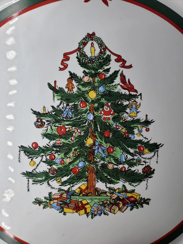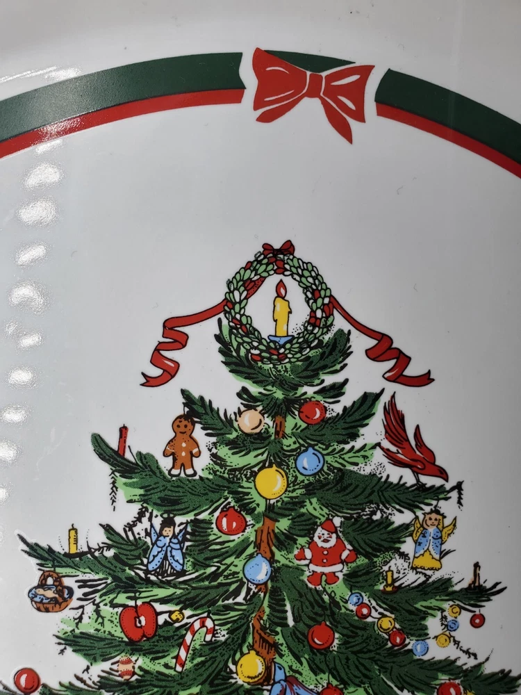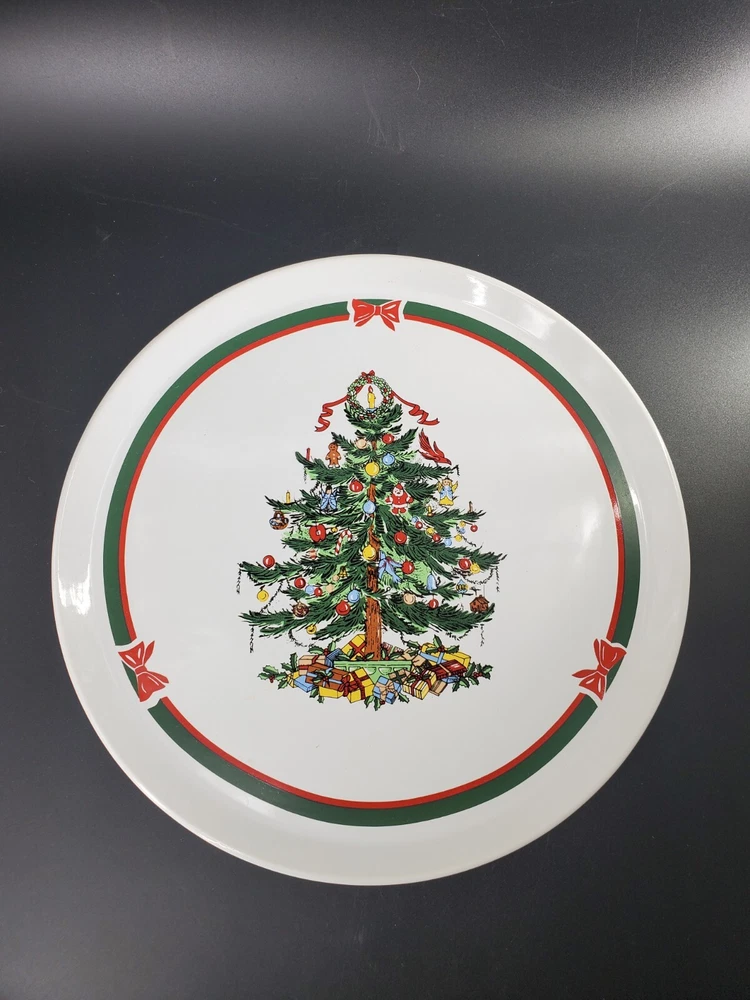 Topco Ribbons & Tree Stoneware 11" Round Christmas Tree Cake Plate Platter